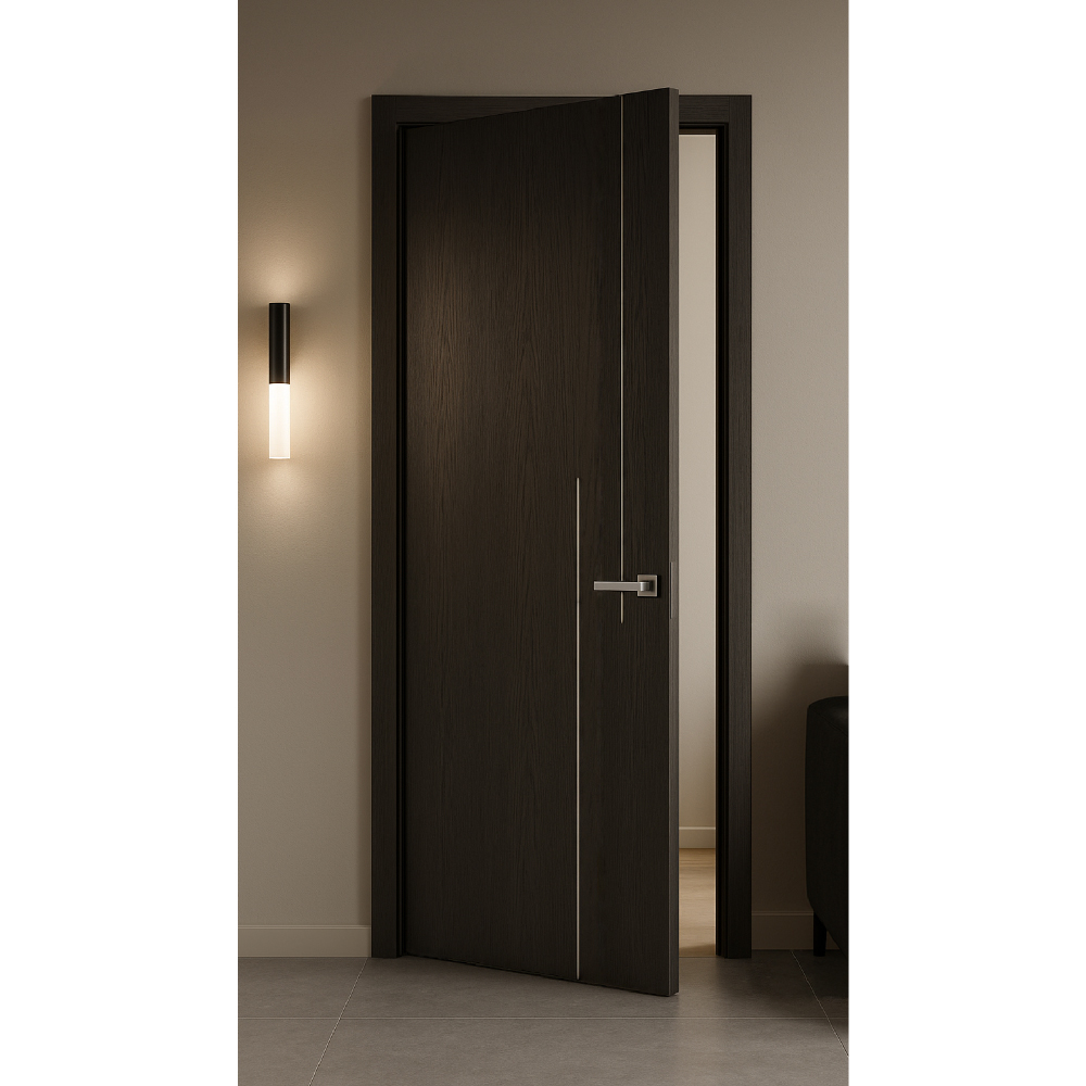 Its sleek and minimalist design is enhanced by a sophisticated rovere gray finish, lending an air of refinement to any room. The neutral hue of the door ensures effortless integration with various color schemes and decor styles, while its universal appeal makes it suitable for both residential and commercial settings.