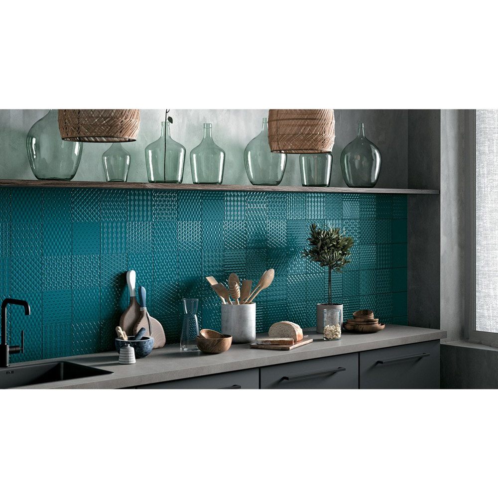 Modern Italian Porcelain Tile, Charme Wally Deep Lagon, 6" x 6"