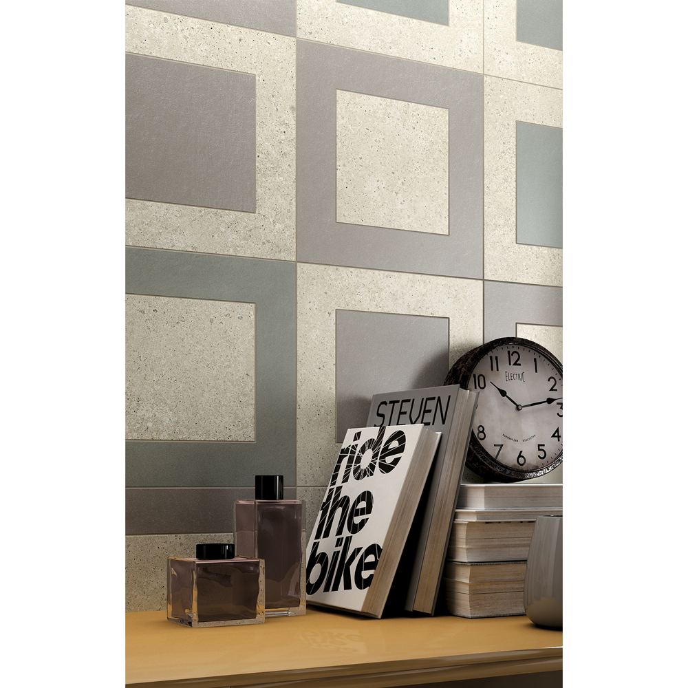 Structural and architectural concrete material is the starting point of Mashup in the new Italian porcelain stoneware collection.