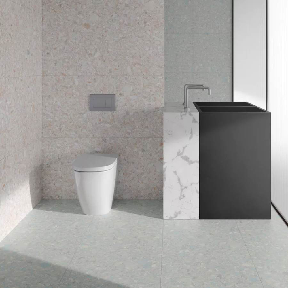 This terrazzo-effect porcelain tile collection can be used on all kinds of surfaces. Thanks to its relaxing modern colour spectrum, it offers a new sophisticated take on vintage terrazzo tiles.