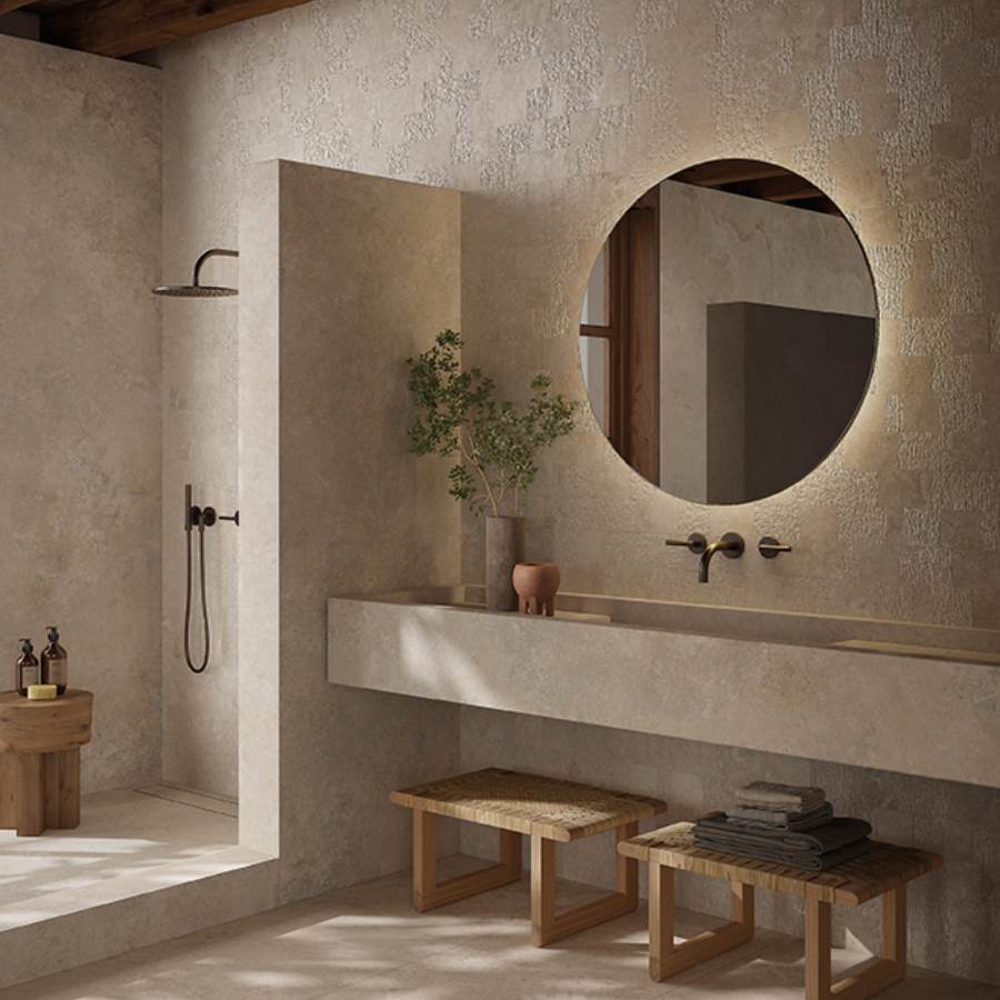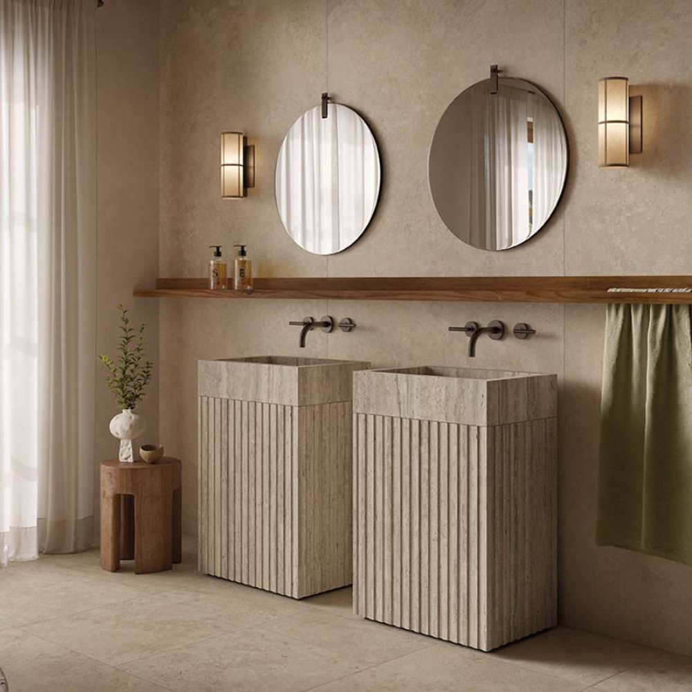 The dialogue between the natural universe and the human dimension has given birth to the Nativa collection, with the warm, delicate beauty of travertine, a timeless material which brings a simple elegance to contemporary spaces.