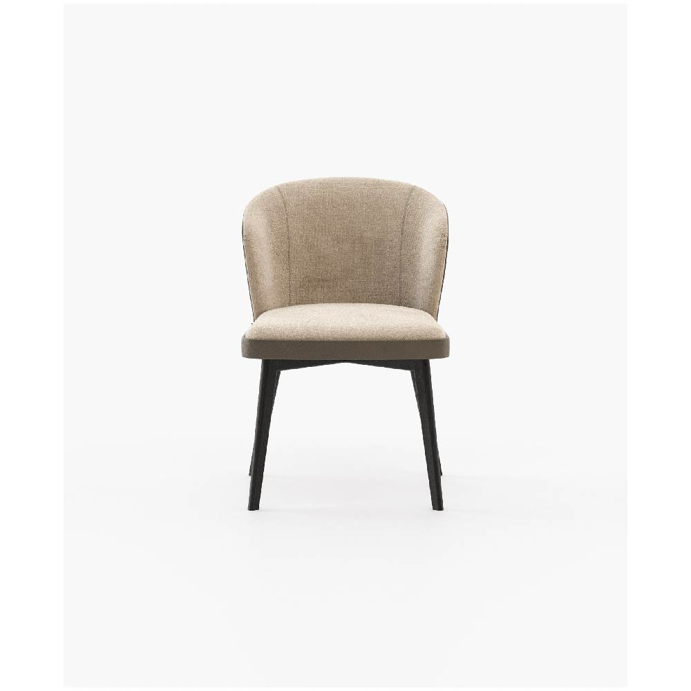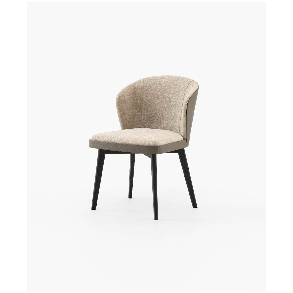 Nelly chair will be the focal point of any dining room set. From Nelly collection, this vintage dining chair presents a deep round convex back and four wood legs. Upholstered in two different fabrics, Nelly is a soulful piece for sumptuous dining rooms.
