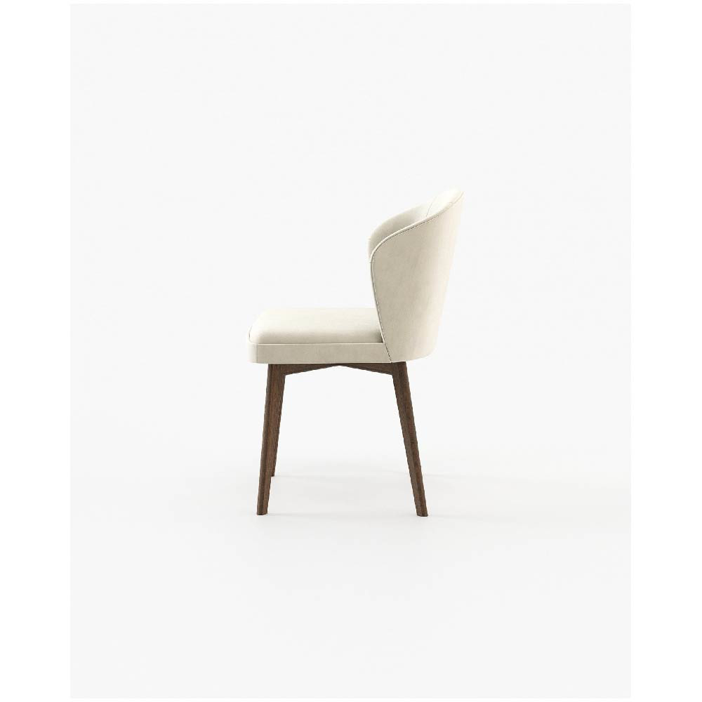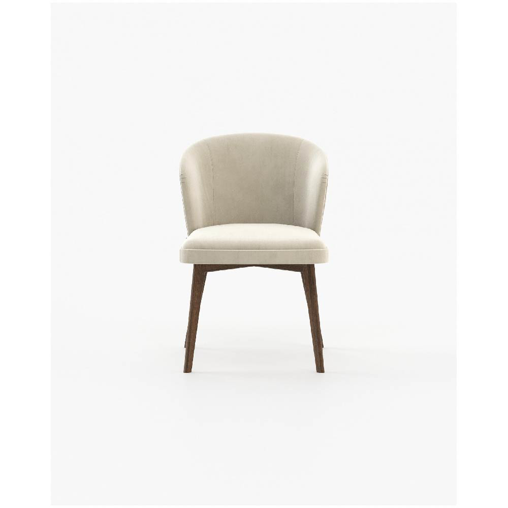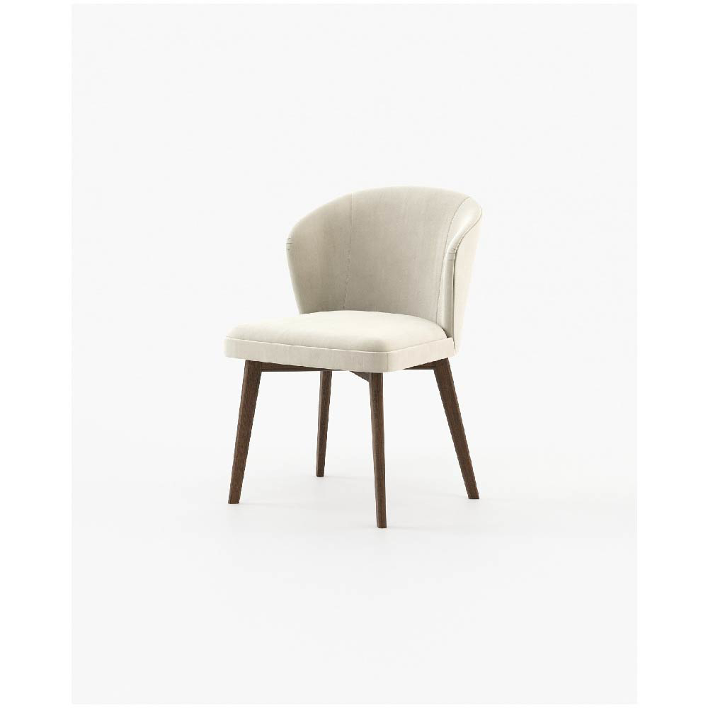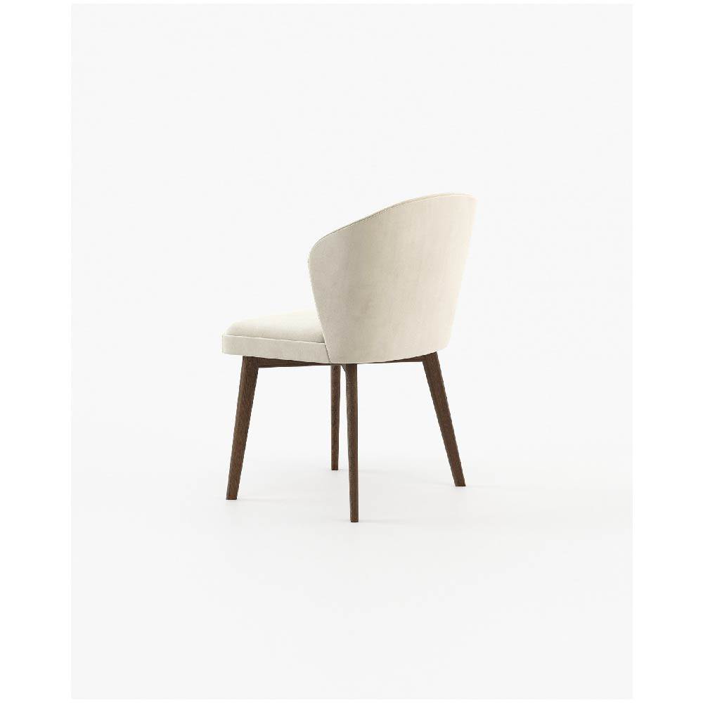 Nelly chair will be the focal point of any dining room set. From Nelly collection, this vintage dining chair presents a deep round convex back and four wood legs. Upholstered in two different fabrics, Nelly is a soulful piece for sumptuous dining rooms.