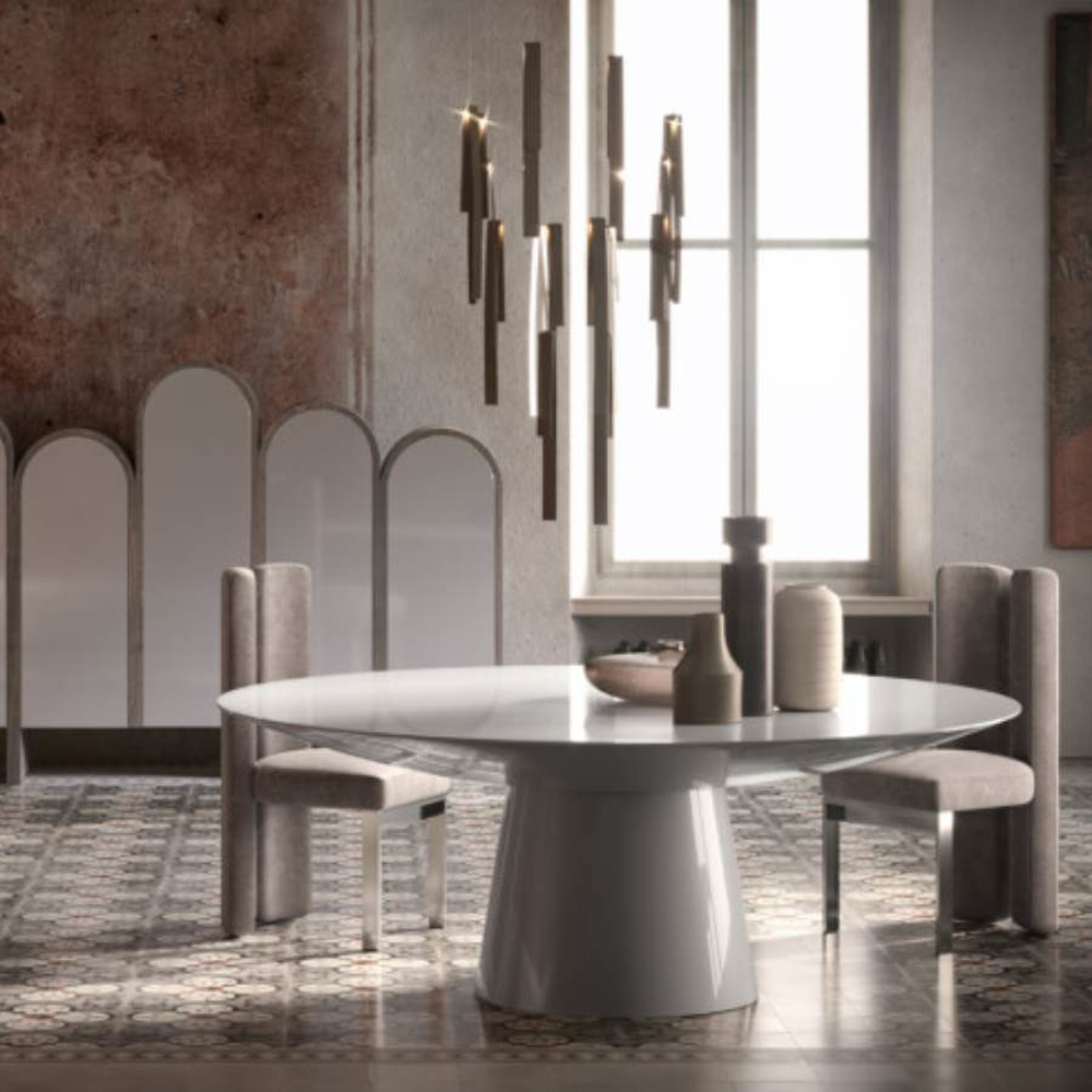 The balanced proportions, determined by the soft curvature of the padded backrest and the linearity of the front metal structure, make this seat an object capable of approaching and conversing with grace and elegance both with a dining or study table and in a meeting room.