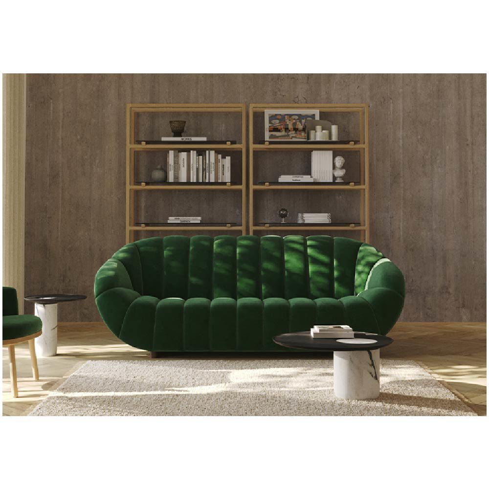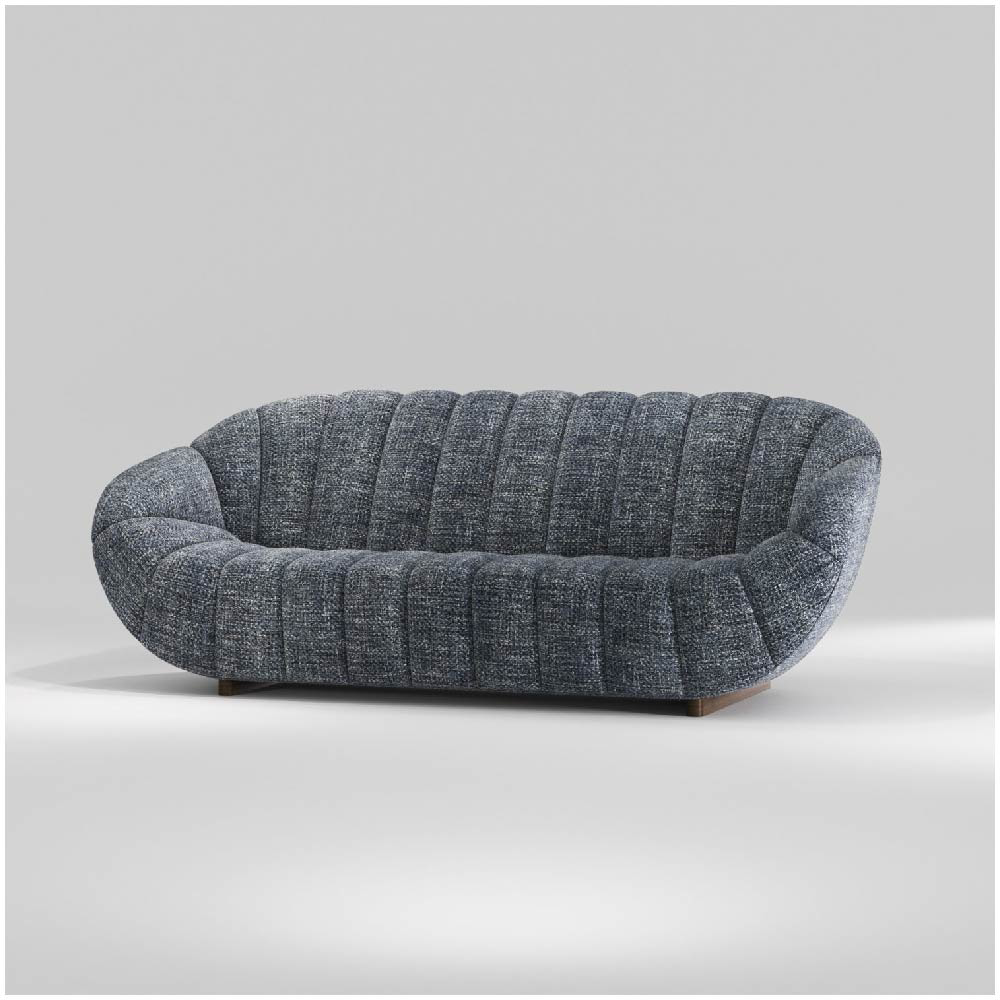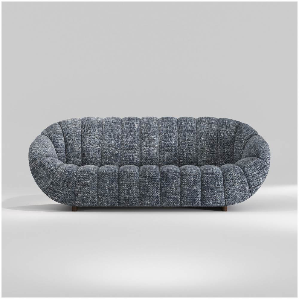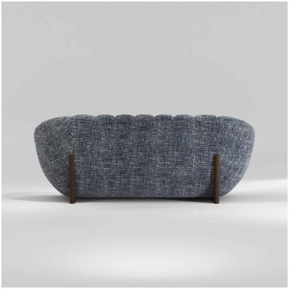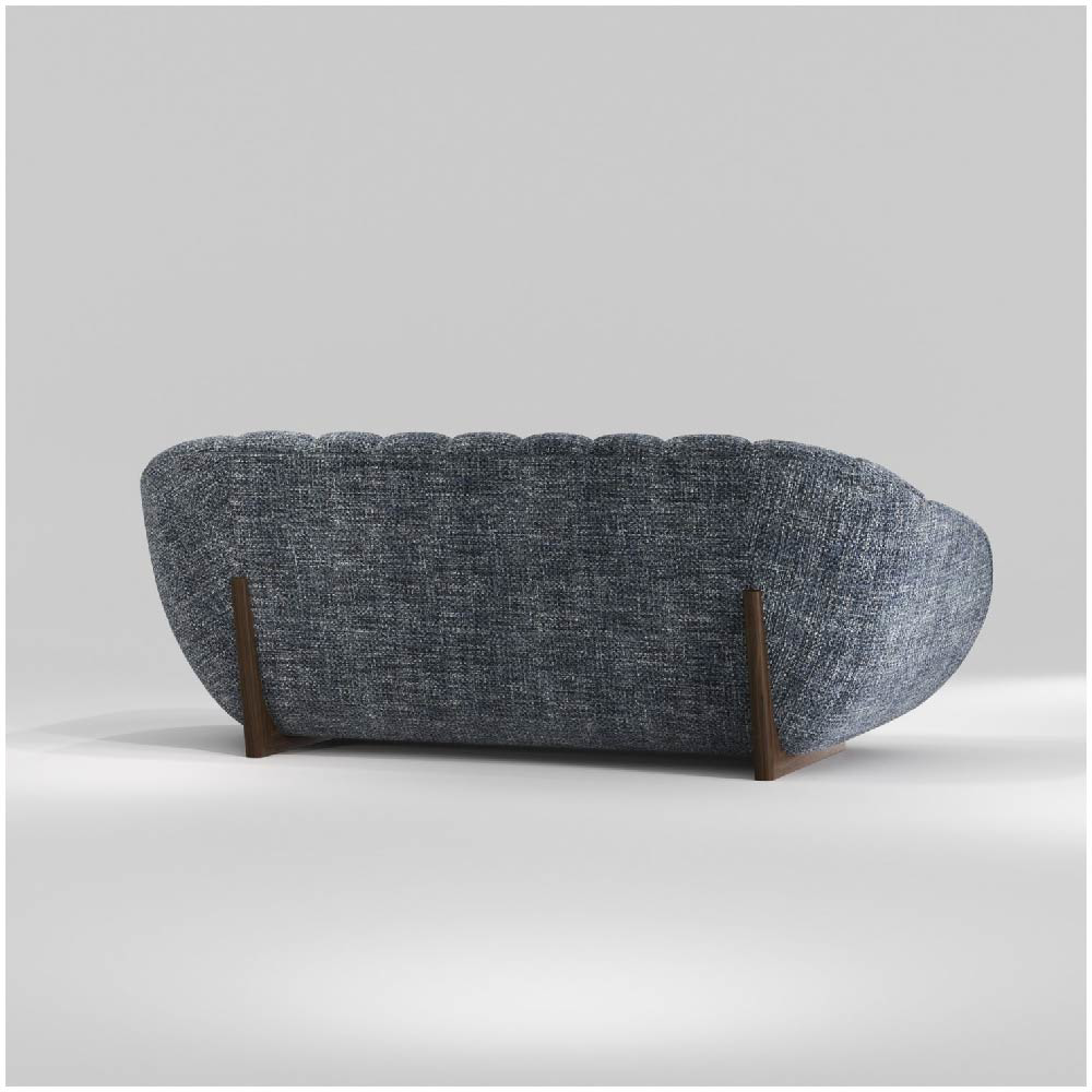 The carefully engineered solid wood legs, positioned from back to front, lend the piece a sense of floating suspension, just like the boats it references, adding an airy, architectural quality that enhances its presence in any room. Despite its substantial form, the sofa never feels heavy or imposing.