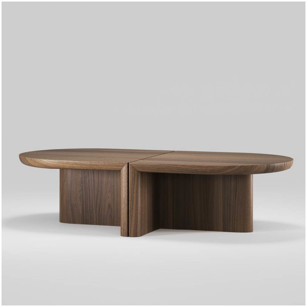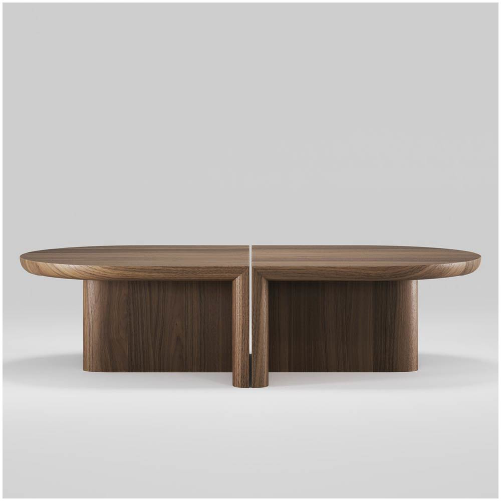 The design masterfully merges strict, geometric elements with soft, sweeping curves, striking a balance between structure and fluidity. This fusion imbues each piece with an undeniable charm, creating a captivating visual dialogue that sparks curiosity and invites closer inspection. The minimalist approach emphasizes both simplicity and functionality, while the unique blend of hard lines and gentle curves infuses the tables with a subtle yet powerful presence.
