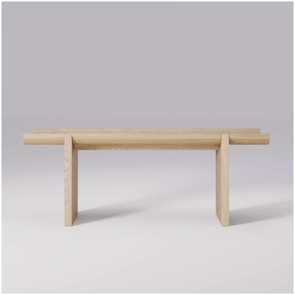 The solid oak construction ensures durability, while the natural texture and finish of the wood add warmth and character, providing a perfect contrast to the rugged, architectural inspiration behind the design.