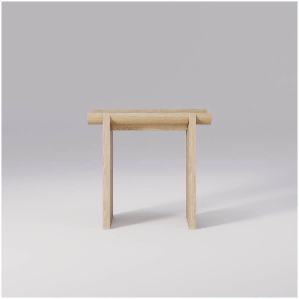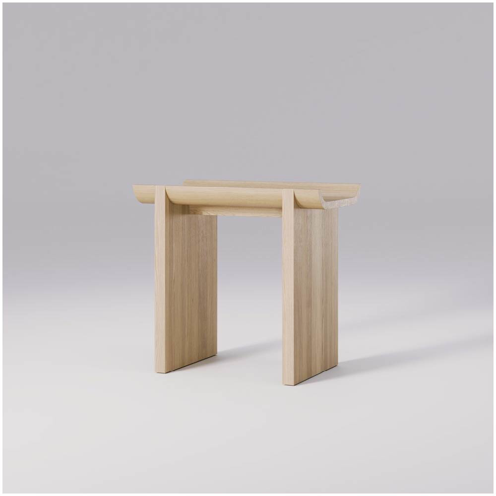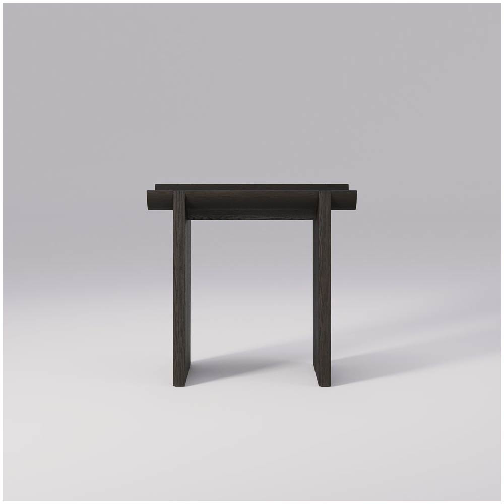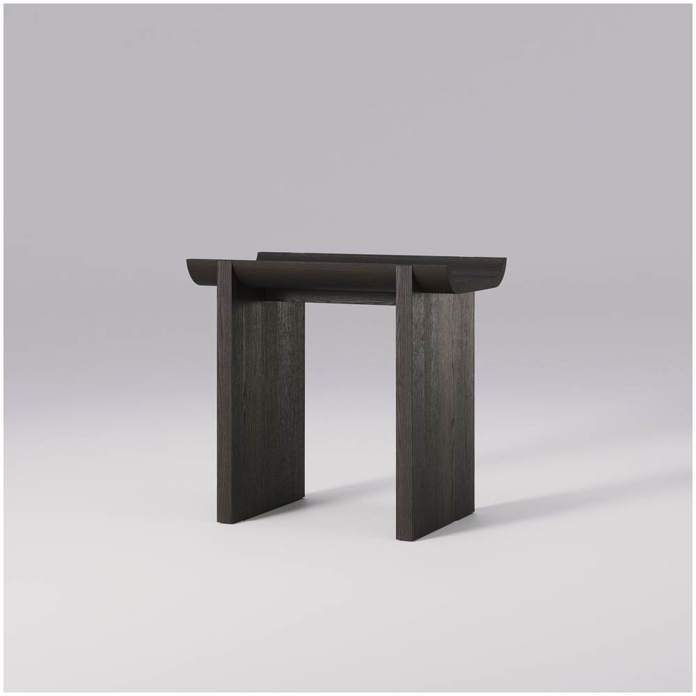 The solid oak construction ensures durability, while the natural texture and finish of the wood add warmth and character, providing a perfect contrast to the rugged, architectural inspiration behind the design.