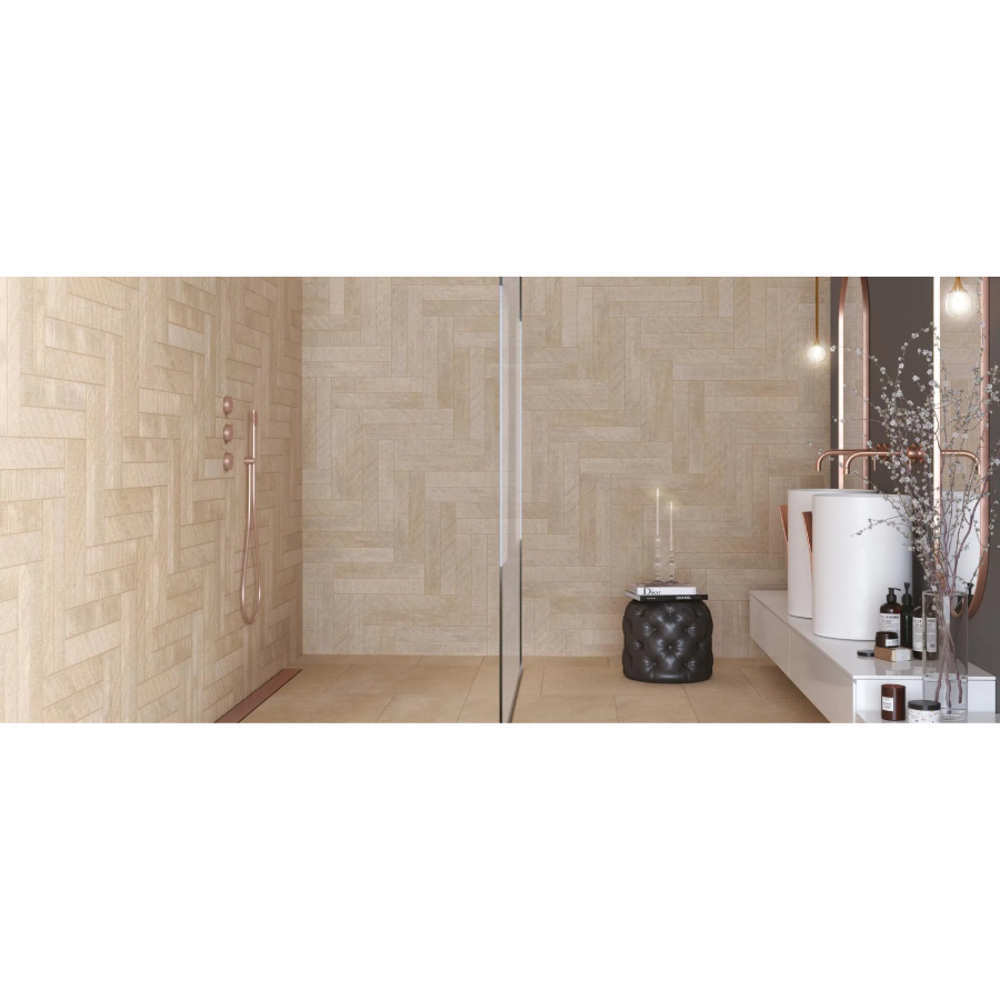 Available in both large and small formats, Limestone offers excellent versatility for wall and floor applications.Its warm, lightly shaded tones pair beautifully with white porcelain elements and a wide range of furnishing accessories, creating serene and harmonious atmospheres.