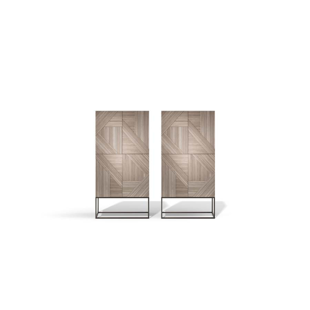 Stripes is a family of cabinets with doors decorated with individually applied solid triangular profiles. The geometries that are created make the Stripes structure precious and the plays of light that cross this succession of lines and crossings give the piece of furniture great strength.