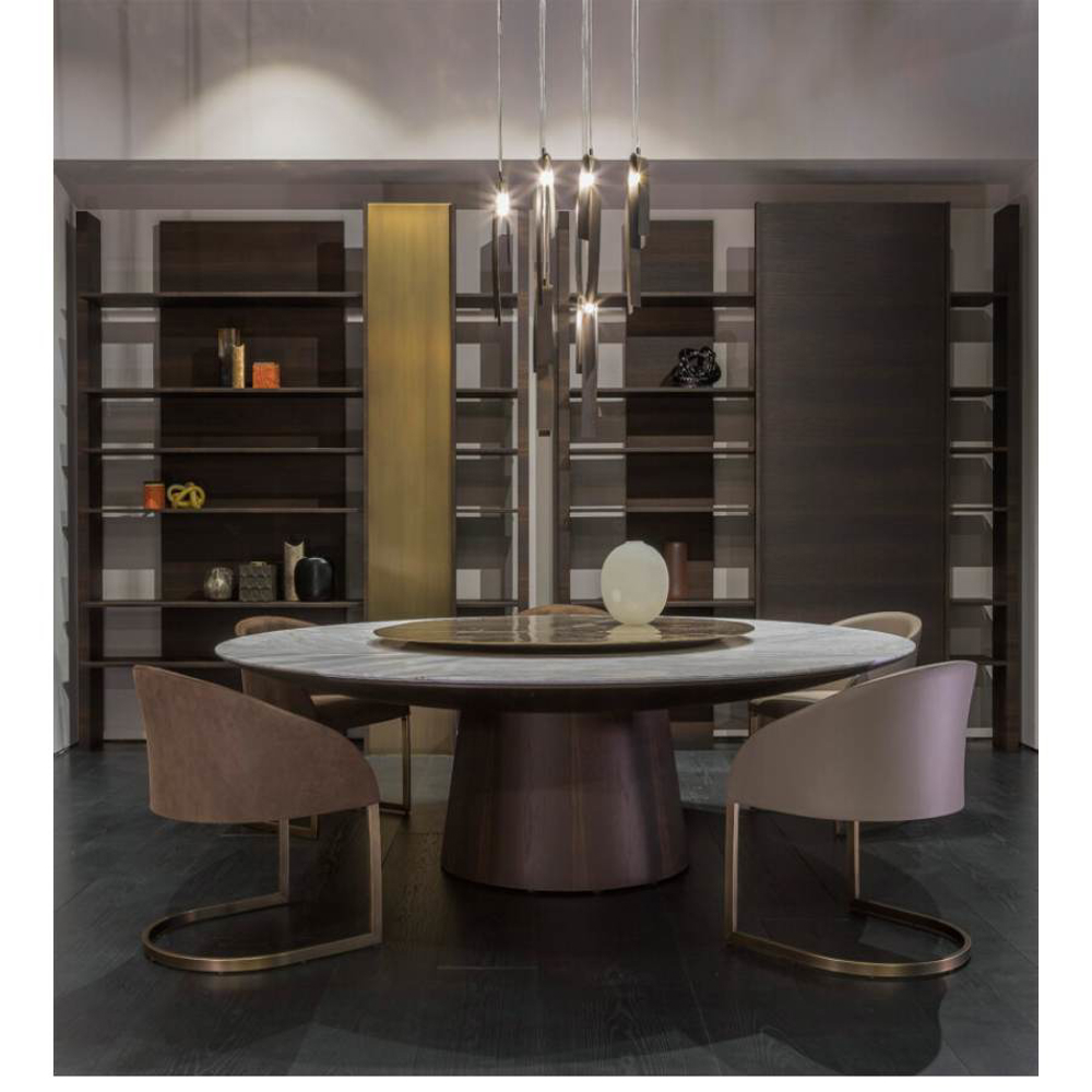 Light, lightness, sobriety. These are the characteristics of Wind Chimes, a family of lamps whose light source is protected by a precious curved sheet of metal. Games of lightness, curved lines that transform into soft surfaces that give life to a chandelier with different configurations.