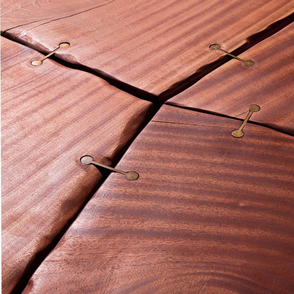 The perimeter of the floor is pleasantly bevelled with a natural imperfection. Made entirely of Sapelli mahogany, 10th Joint Dining Table is as solemn as it is precious.