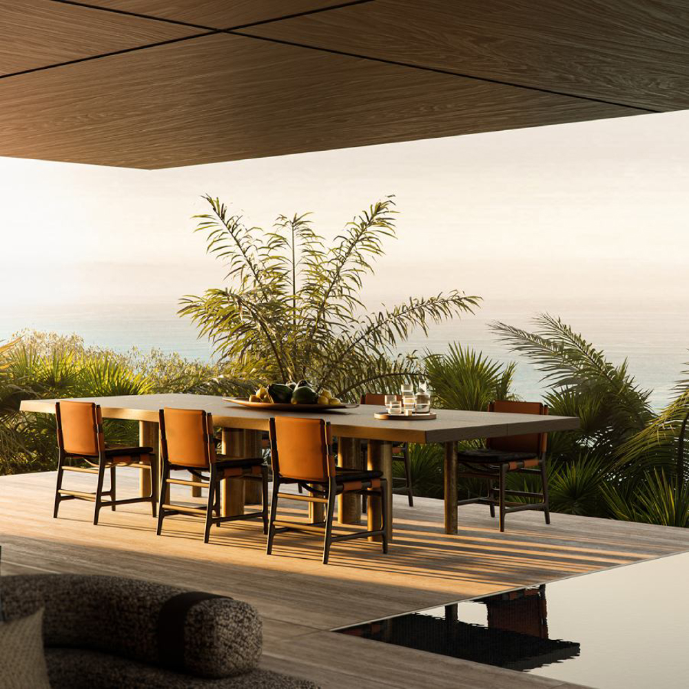 10th Joint Dining Table, with its size, imposes its presence in all environments. Available in matt mahogany or Barrique finish, it alone gives the space a distinctive character, furnishing with its presence alone.