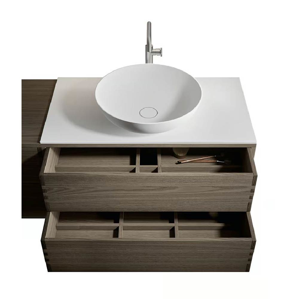 ADE002 Top in Stonematt with Catino basin in Stonematt. Monobloc in Castagno Tinto Anice finish. Mirror with lighting band. Dimensions: W.59.06" D.19.69"
