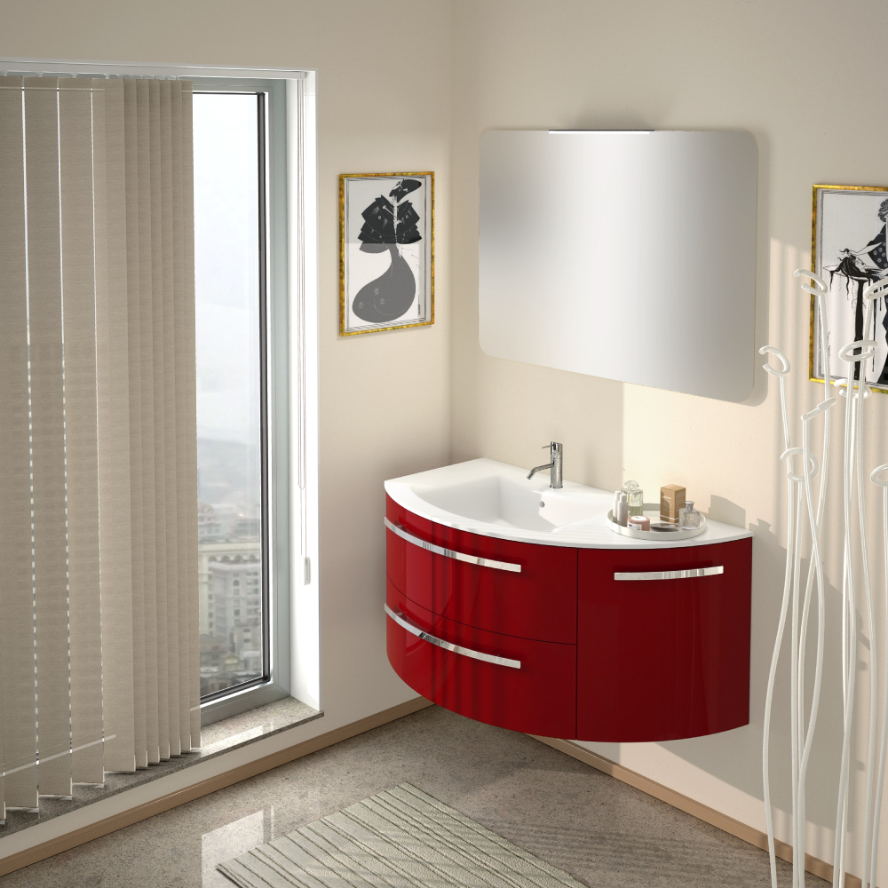 Yara 38" vanity with right rounded cabinet in Red