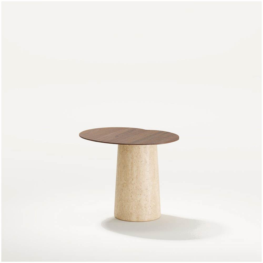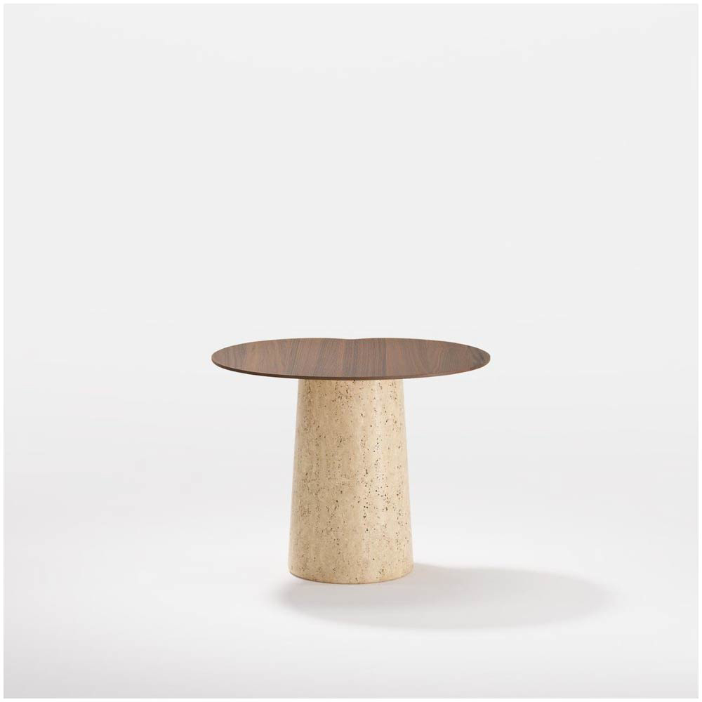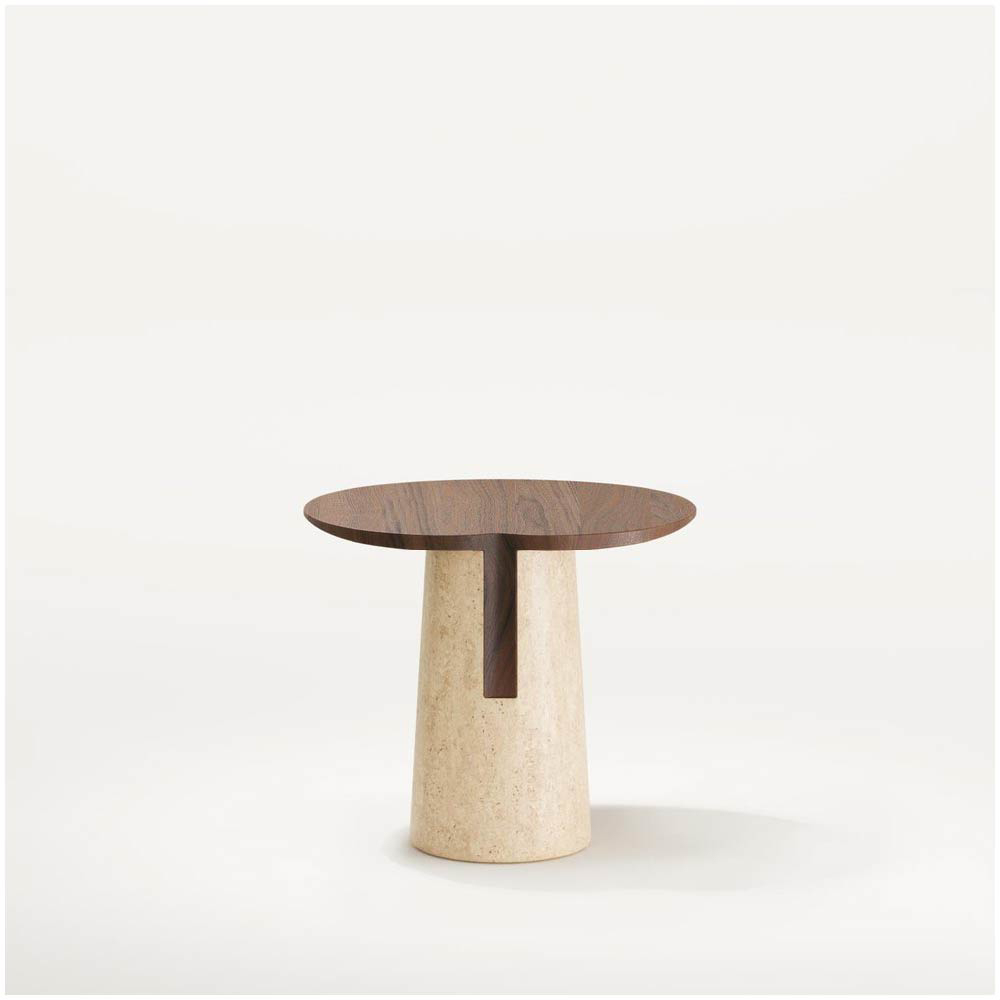 Anchor is a set of tables comprising two side tables and a coffee table, crafted from a combination of wood and stone that adds depth and versatility, making it adaptable to a variety of interior styles.