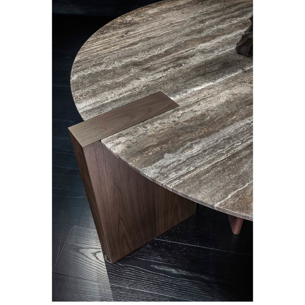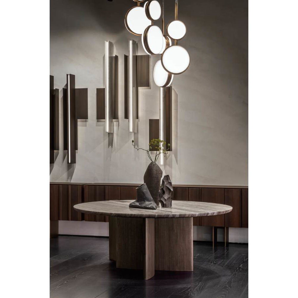 The Antinomia-T table was born from this thought and, through the combination of a rigid, monolithic and rigorous base with a top with soft and contoured shapes, creates a mix of signs and geometries which, despite their apparent dissonance, takes on strength and vigor merging into a unicuum that is sober and never excessive.