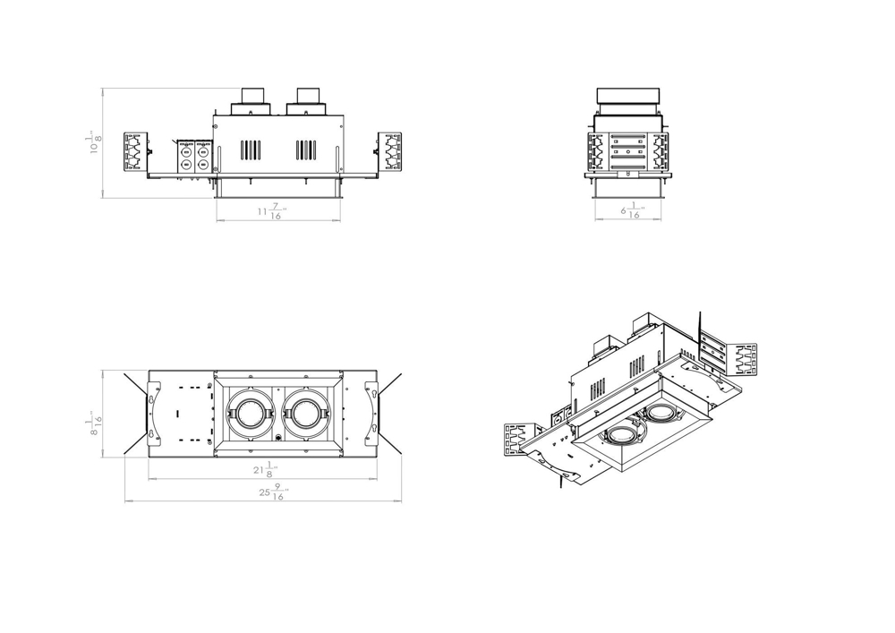 LED COB New construction Double head recessed multiple downlight Open TRIMLESS STYLE