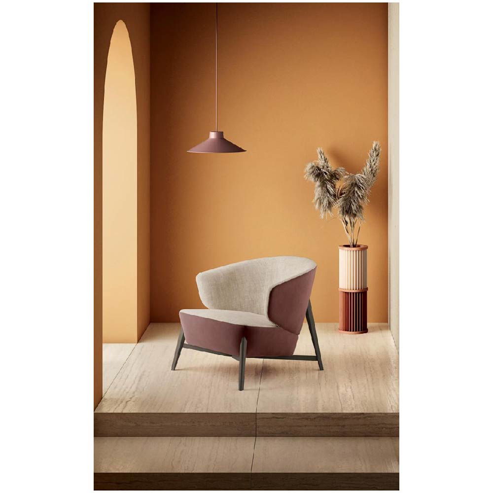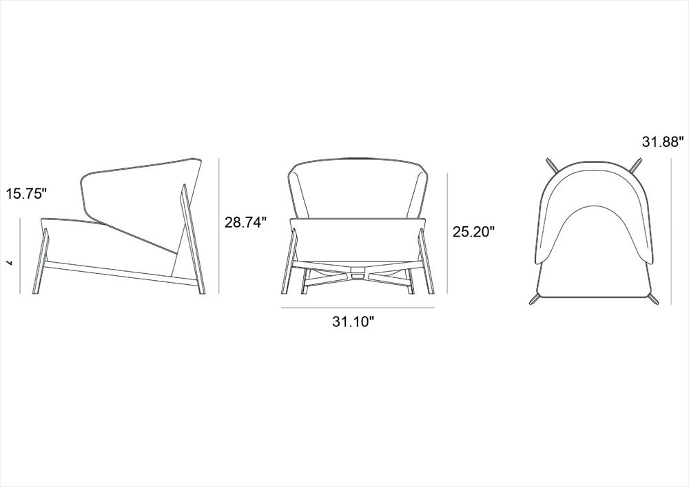 The structure of the body is in solid wood and curved plywood, upholstered with expanded polyutethane foam and dacron. Weight: 22 kg Required fabric: 2,70 m. (h 1,40). Other fabric combinations available upon request.
