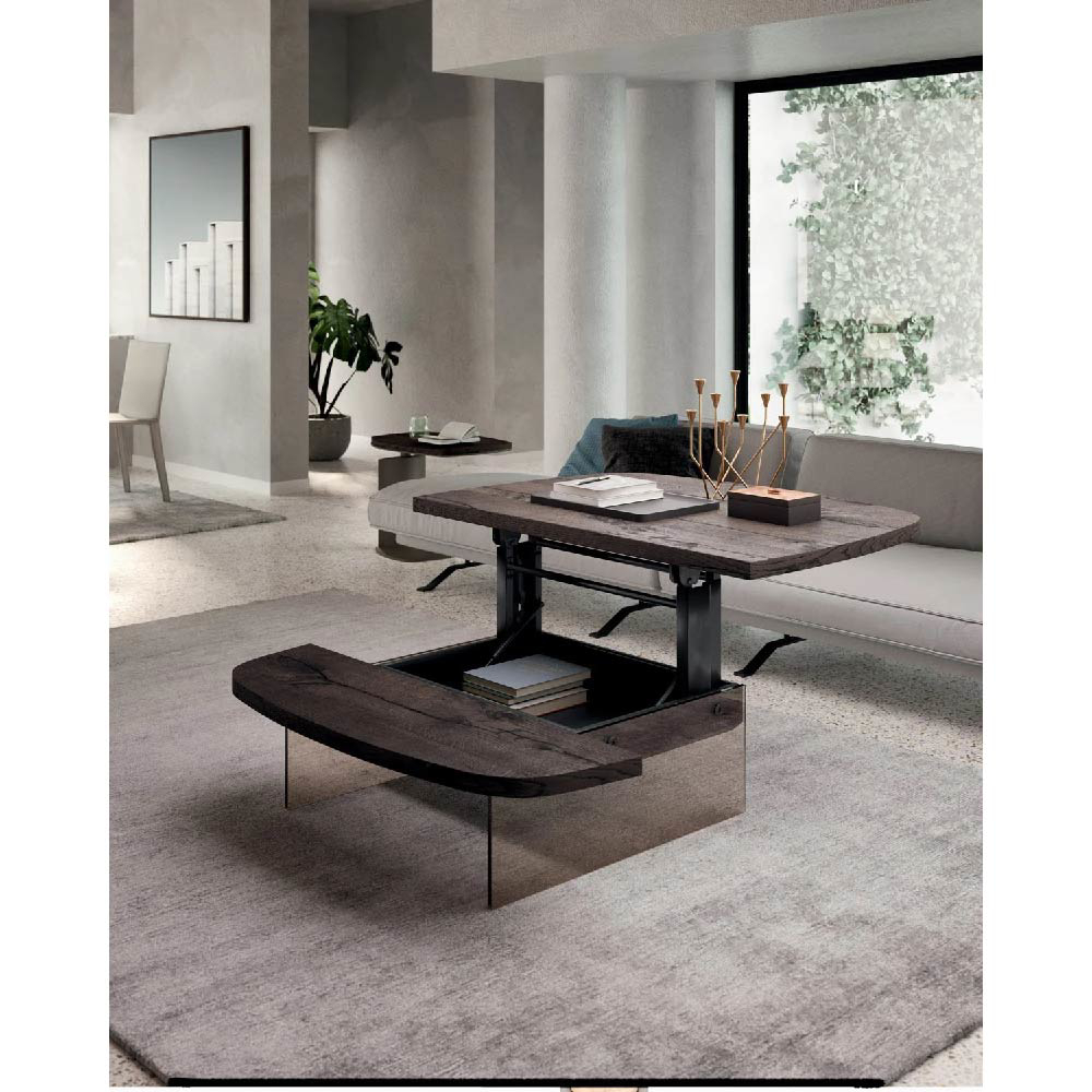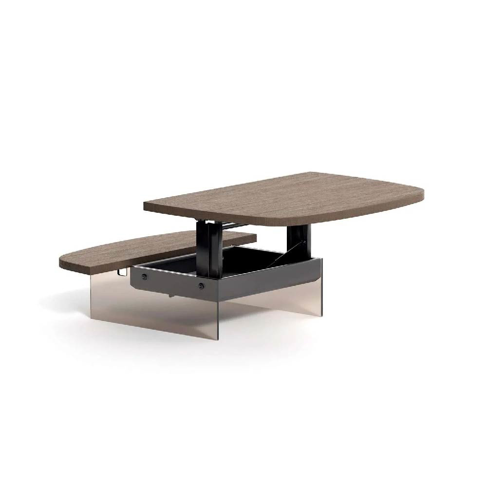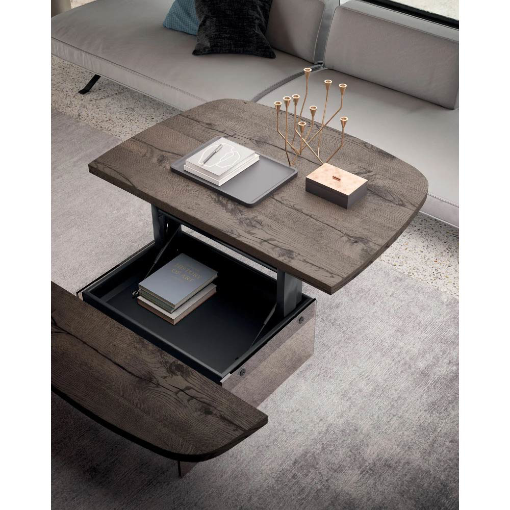 The organisation of space is stored inside the top thanks to the practical compartment that can hold magazines, accessories and ready-to-use objects, hiding everything discreetly by closing the cushioned and silent top with a gesture.