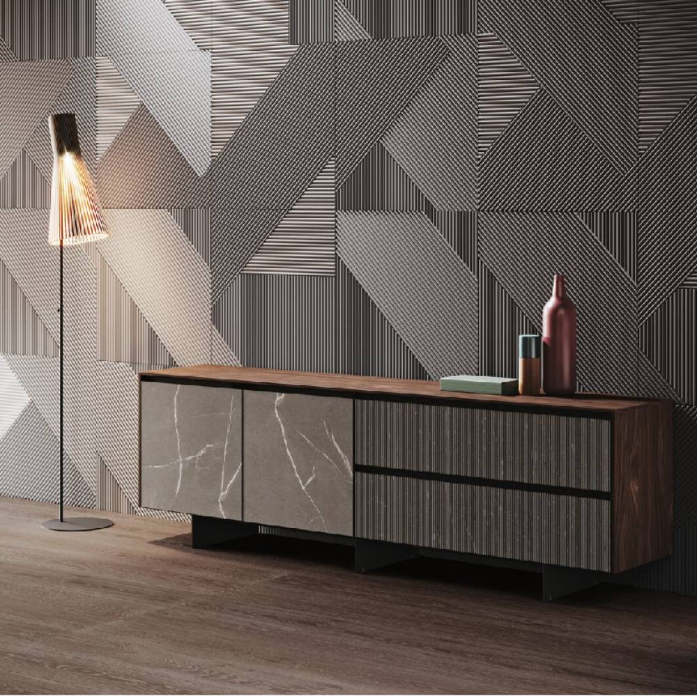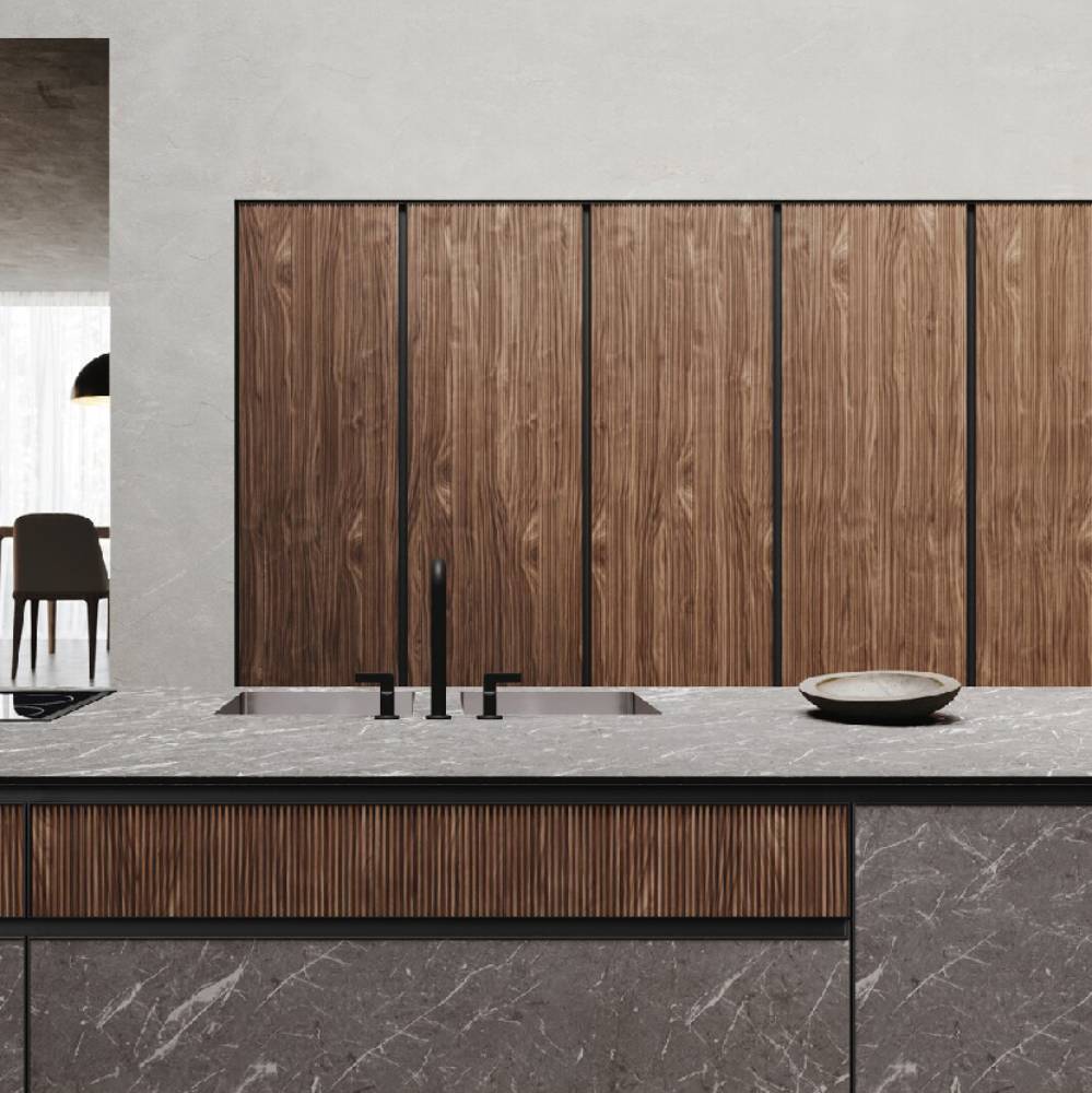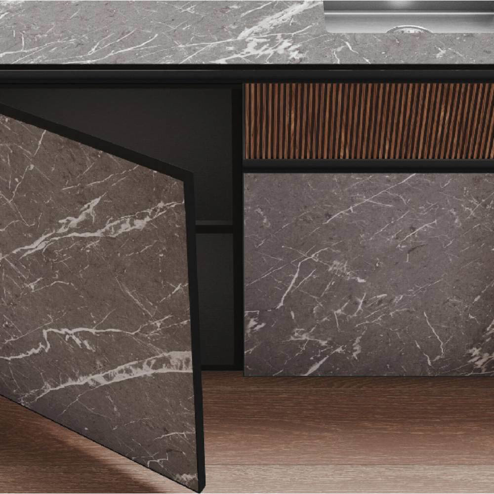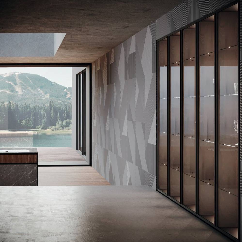Allowing freedom is the sign of a great strength. We let materials get over their own attitude. It implies the ability to become a real tool of nature to enhance the range of possibilities of elements like the native mildness of wood or the suggestions coming from outer space. A whole universe comes at hand, tangible and in a multipurpose capacity, allowing us to experience the deepness of space and substance. This is an expression of real liberty: the minimalist design is free to run with its vivid essence along contours and grain, sharp lines that become a common sign, living in the light and shade, balancing the global aesthetics and the slightest particulars. A model that is expansion: thanks to the aluminum frame, which comfortably allow space for the central panel and at the same time allows opening grip on the top edge.