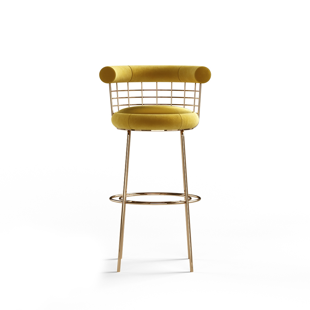 The Berry bar chair was designed to not go unnoticed in any mid-century ambiance. Inspired by the saxophonist Chu Berry, this bar chair brings us the best of the golden era. Upholstered with soft and rich velvet, the brass details of this bar chair will make it the star of any ambiance.