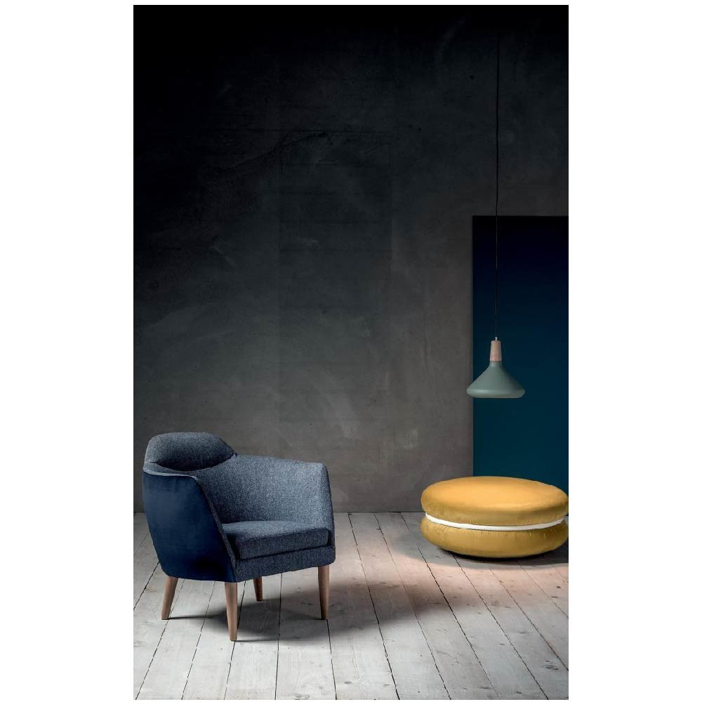 Its slight tilt and padded backrest make it a comfortable and welcoming armchair, perfect for moments of relaxation and conviviality.