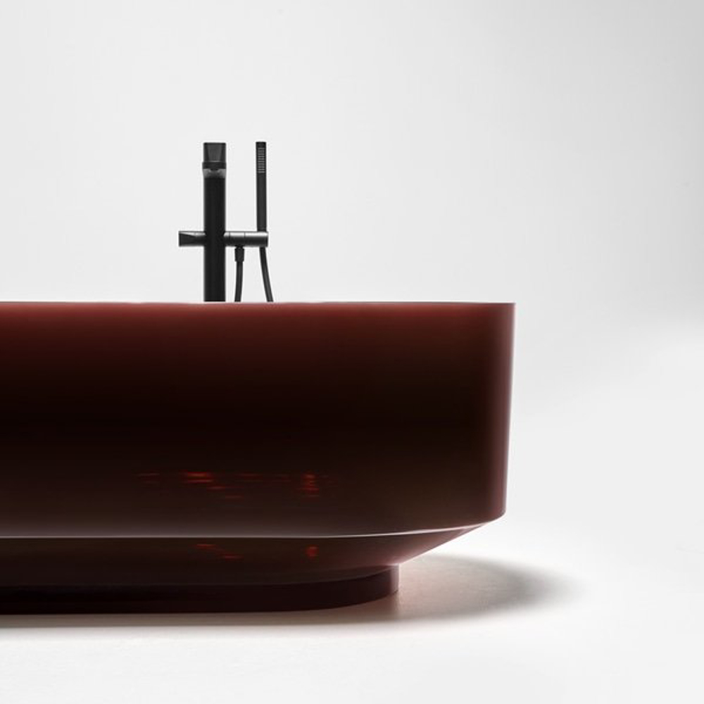 Essential shape, a welcoming volume and iconic in its essence. The freestanding Borghi bath is made of Cristalmood or Icemood. The marked chromatic personality and the typical reflections of the material make it an absolute protagonist of the space, a remarkable element around which to build the bathroom environment. The volume is pure, capacious, ergonomic, lightened by a narrow base.