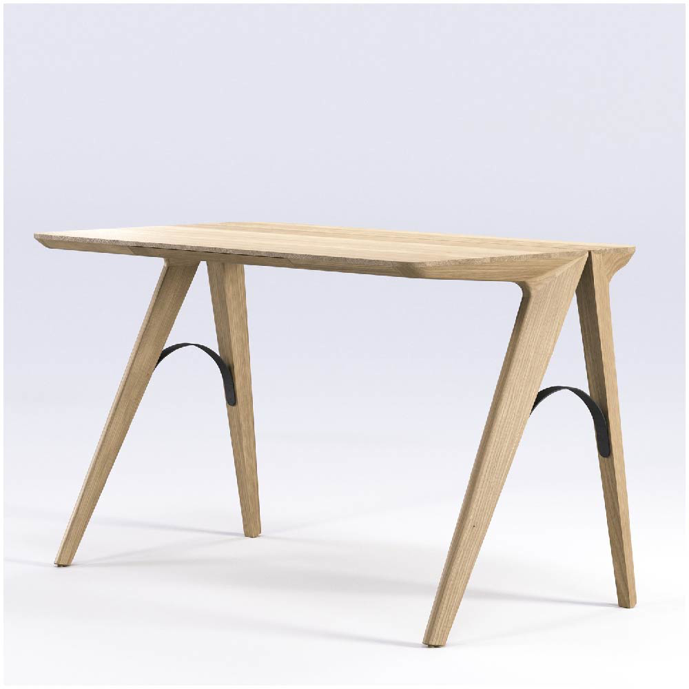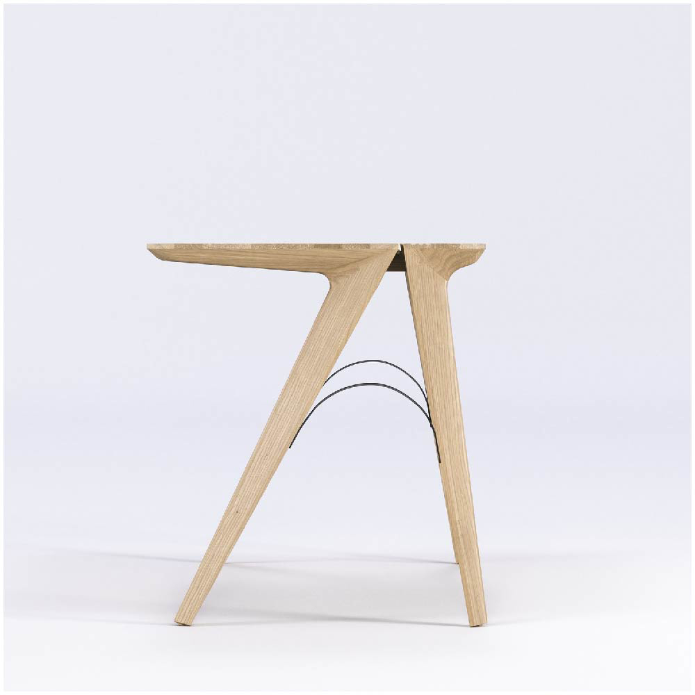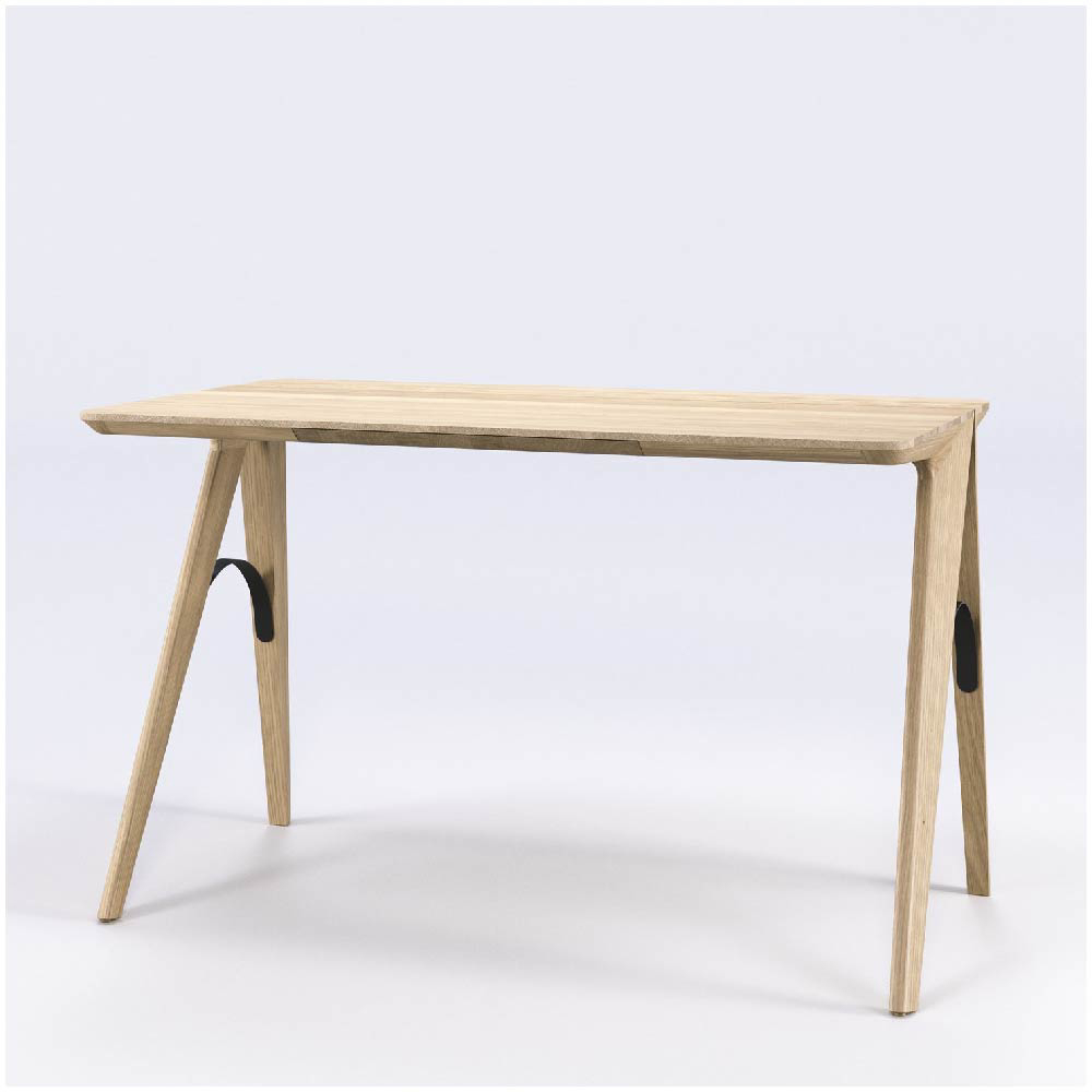 It is made from oak or walnut with steel arcs that span the legs, much like the structures you’d find on the bridges in Porto. This unique blend of natural wood and industrial steel creates an aesthetic that is both grounded and elevated, evoking a sense of architectural elegance and resilience. The carefully chosen materials not only offer durability but also exude warmth and sophistication, adding character to any workspace.