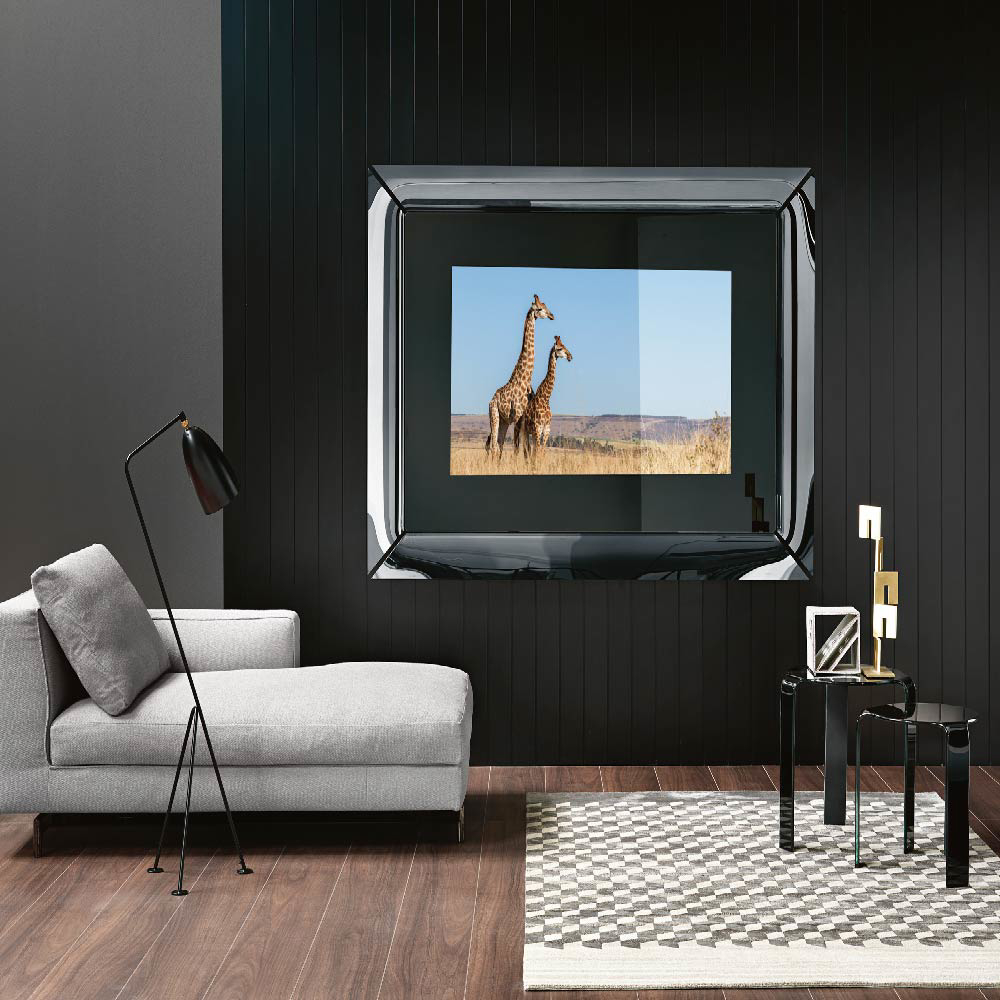 Philippe Starck, internationally renowned architect and design, designed for FIAM the mirror in glass Caadre, available also with tv included (Caadre TV).