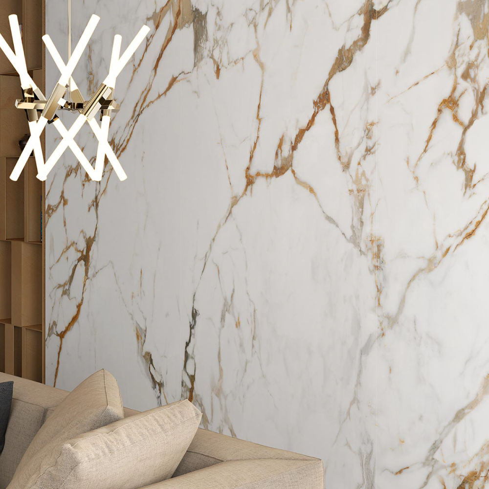 Calacatta Gold is one of Marblessa’s sintered-stone large-format collections. With a 1/4" thickness, this collection is ideal for interior and exterior flooring and cladding, façades and the most exclusive furniture tops. Thanks to its three designs in different pieces, an infinity effect can be created on the surfaces.