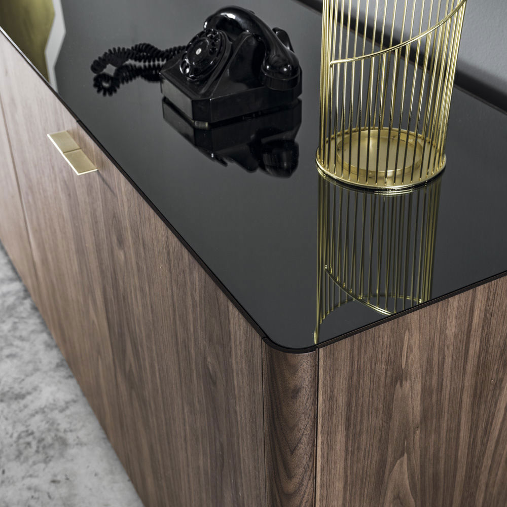 The unexpected interplay of joints and infinite modularity make this dual-face model absolutely unique.  The Cinqueterre collection is not only a sideboard and emphasizes the qualities of wood making tradition in a contemporary key. The material and chromatic customization is also infinite. The sideboard is available in four or three doors in essence matt canaletto walnut or ash. The lacquered color matt or glossy make this storage unit perfect for contemporary design. The top can be mirror, marble or wood – it is  just one of the technical aspects that characterize the collection in a modern and creative sense of pure design.