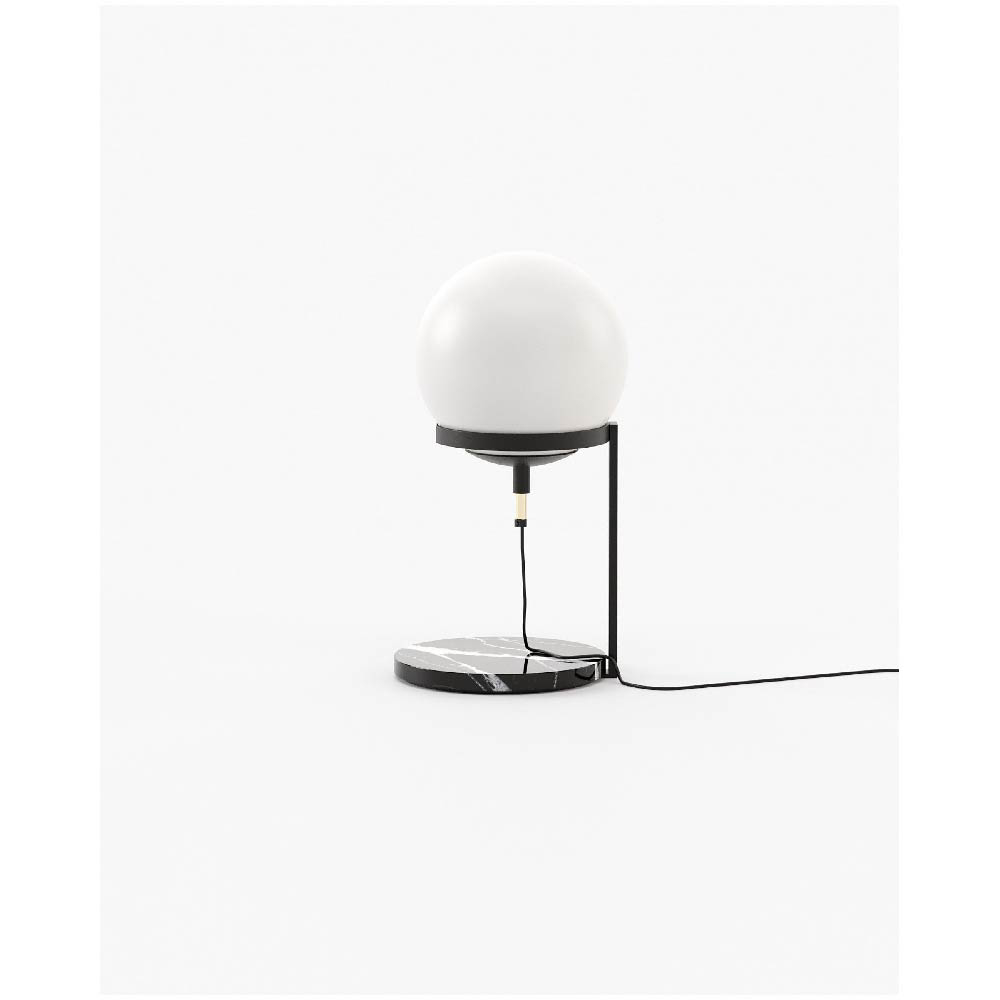 The Clarke table lamp is a true statement piece, featuring a large spherical glass shade that sits atop a solid marble base. This stylish lamp adds a touch of luxury to any room, whether it be in the hallway, office, or living room.