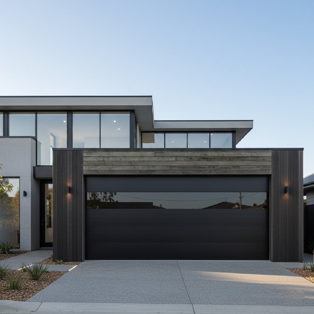 The Insulated Contemporary Garage Door with Infinity Horizontal Glass is designed to combine modern aesthetics, durability, and thermal efficiency. Featuring a Titan Grey smooth panel pattern, this contemporary garage door is constructed with galvanized steel sheets on both sides and a polyurethane foam–filled insulated core, delivering excellent insulation, strength, and long-term performance. The 40 mm thick insulated panel, combined with a 26-gauge galvanized steel front sheet and a 28-gauge galvanized steel back sheet, ensures effective thermal and sound insulation while maintaining structural reliability. This makes the door suitable for residential applications.