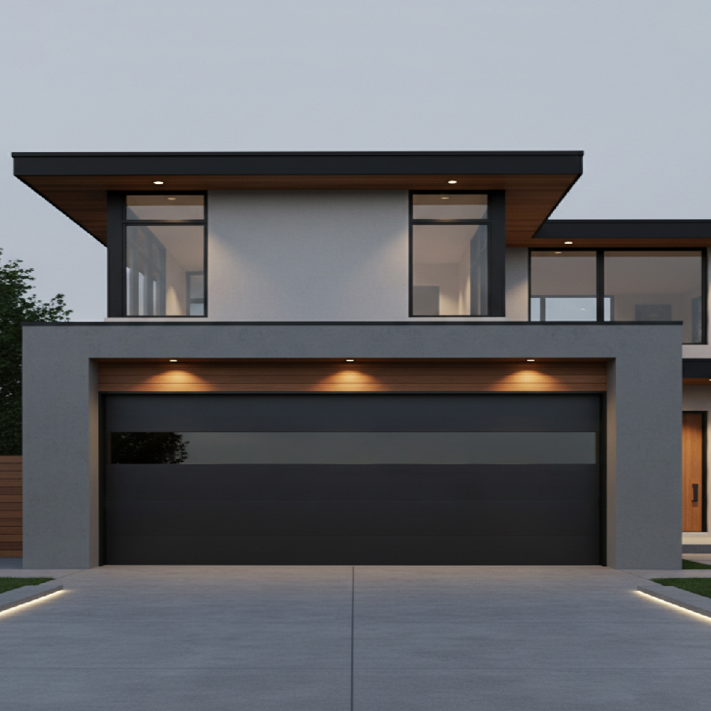 The Insulated Contemporary Garage Door with Infinity Horizontal Glass is designed to combine modern aesthetics, durability, and thermal efficiency. Featuring a Titan Grey smooth panel pattern, this contemporary garage door is constructed with galvanized steel sheets on both sides and a polyurethane foam–filled insulated core, delivering excellent insulation, strength, and long-term performance. The 40 mm thick insulated panel, combined with a 26-gauge galvanized steel front sheet and a 28-gauge galvanized steel back sheet, ensures effective thermal and sound insulation while maintaining structural reliability. This makes the door suitable for residential applications.