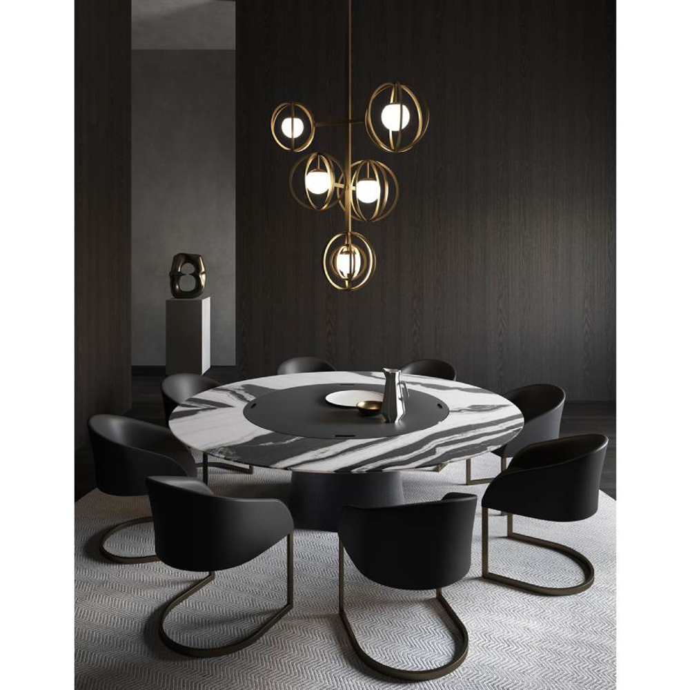 Copernico is a system of lamps created by enhancing the beauty of the solar system. In its various configurations, one or more globes of light are emphasized by a metal structure that grows around the light source, almost as if it was tracing the course of a satellite that orbits around it.