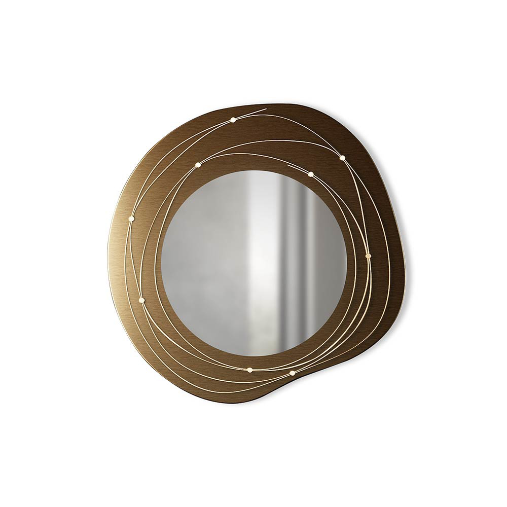 DIMENSIONS Diam. 115 cm | 45,27” D 6 cm | 2,36” Materials and Finishes: Mirror and Polished Brass. Customization: Custom sizes and finishes are available under consultation. WEIGHT 45 kg | 99,20 lbs