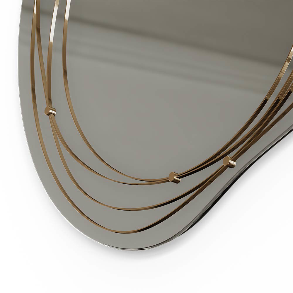 The unique brass shape of the Cordon Mirror is meticulously worked to enhance all the luxurious details that a piece like this can reflect. The spiral recreation achieves a lavish level through the brass, taking special attention to the reflected details on the mirror.
