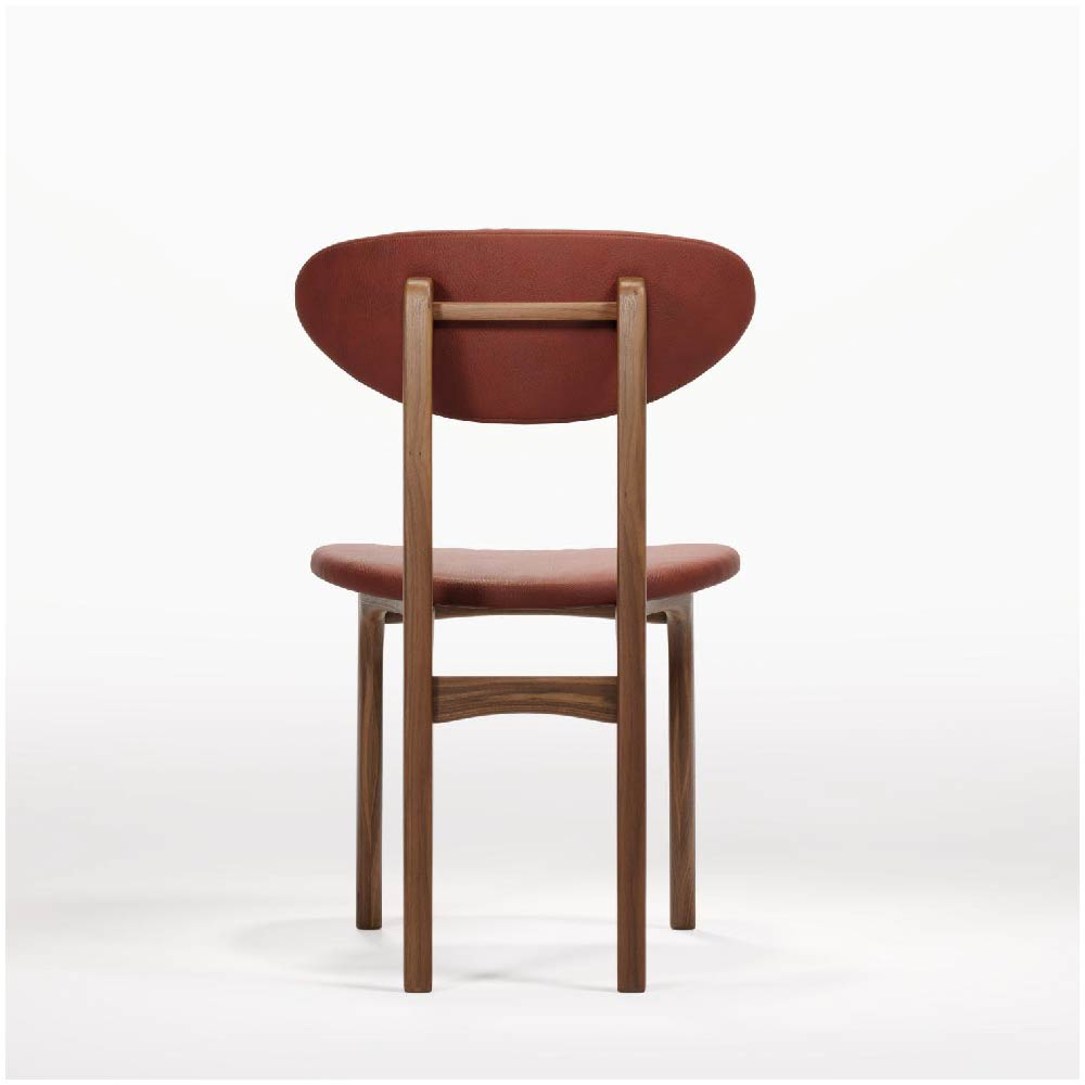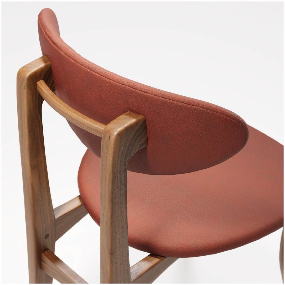 Crafted from solid wood, this chair showcases a harmonious blend of artisanal craftsmanship and refined aesthetics. Intricate detailing on the legs and backrest subtly enhances its sculptural quality, while the upholstery, offered in a curated selection of premium fabrics and supple leathers, adds comfort and tactile richness to the experience.