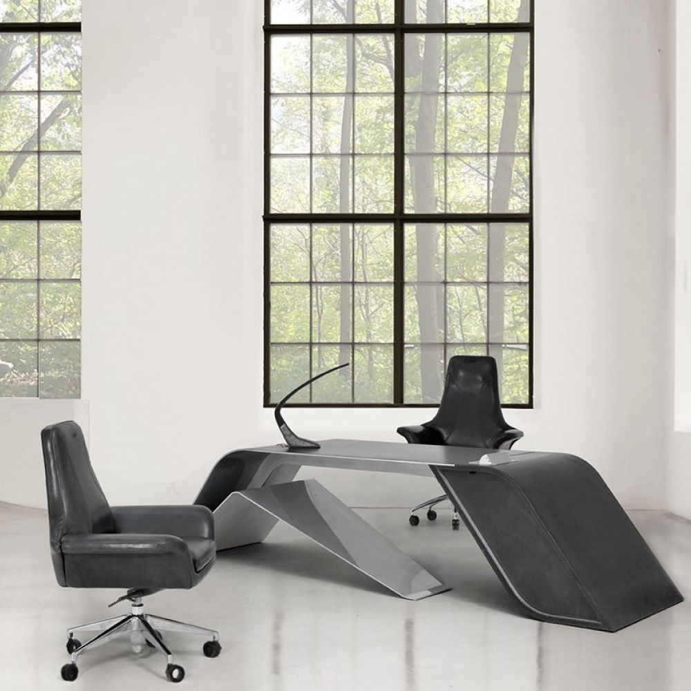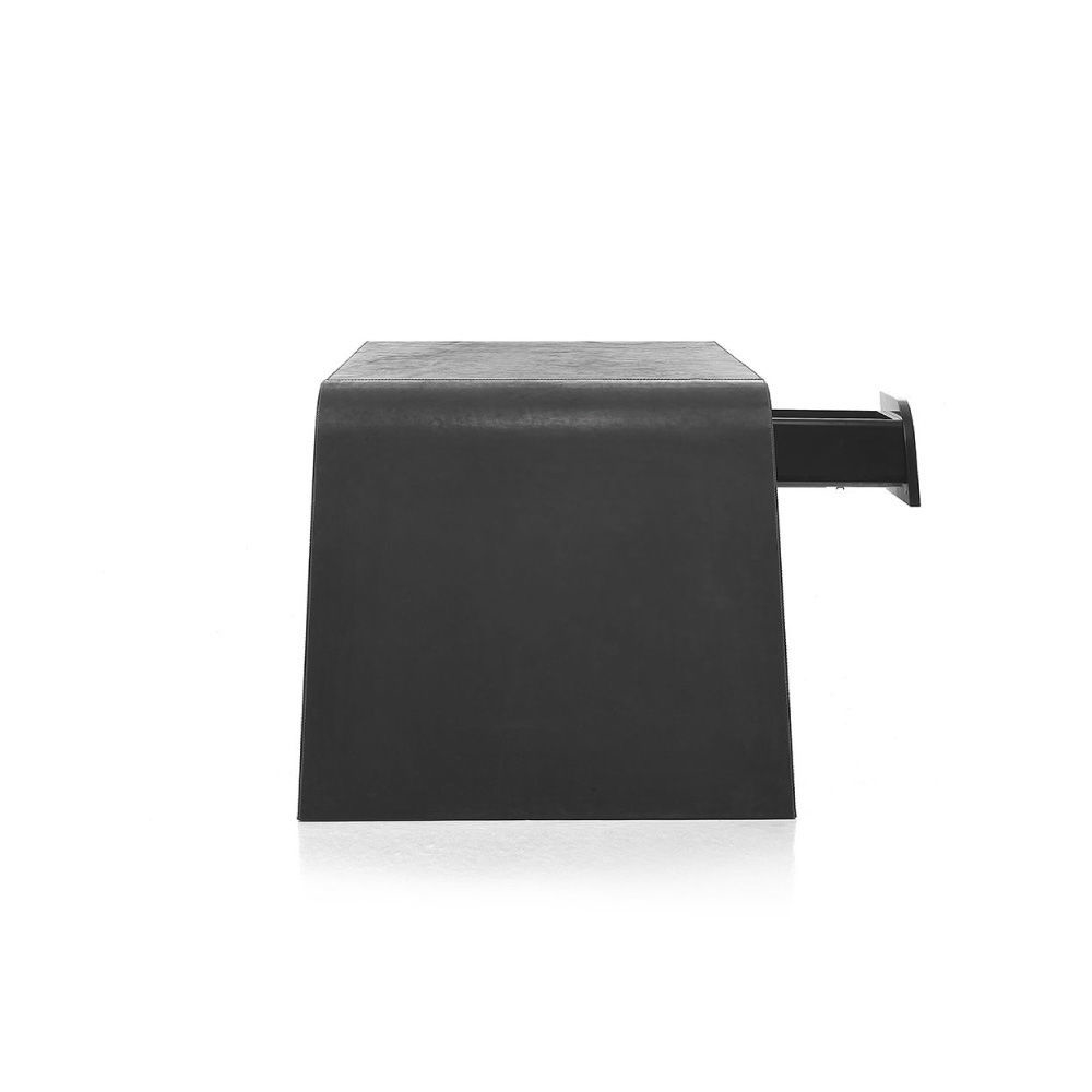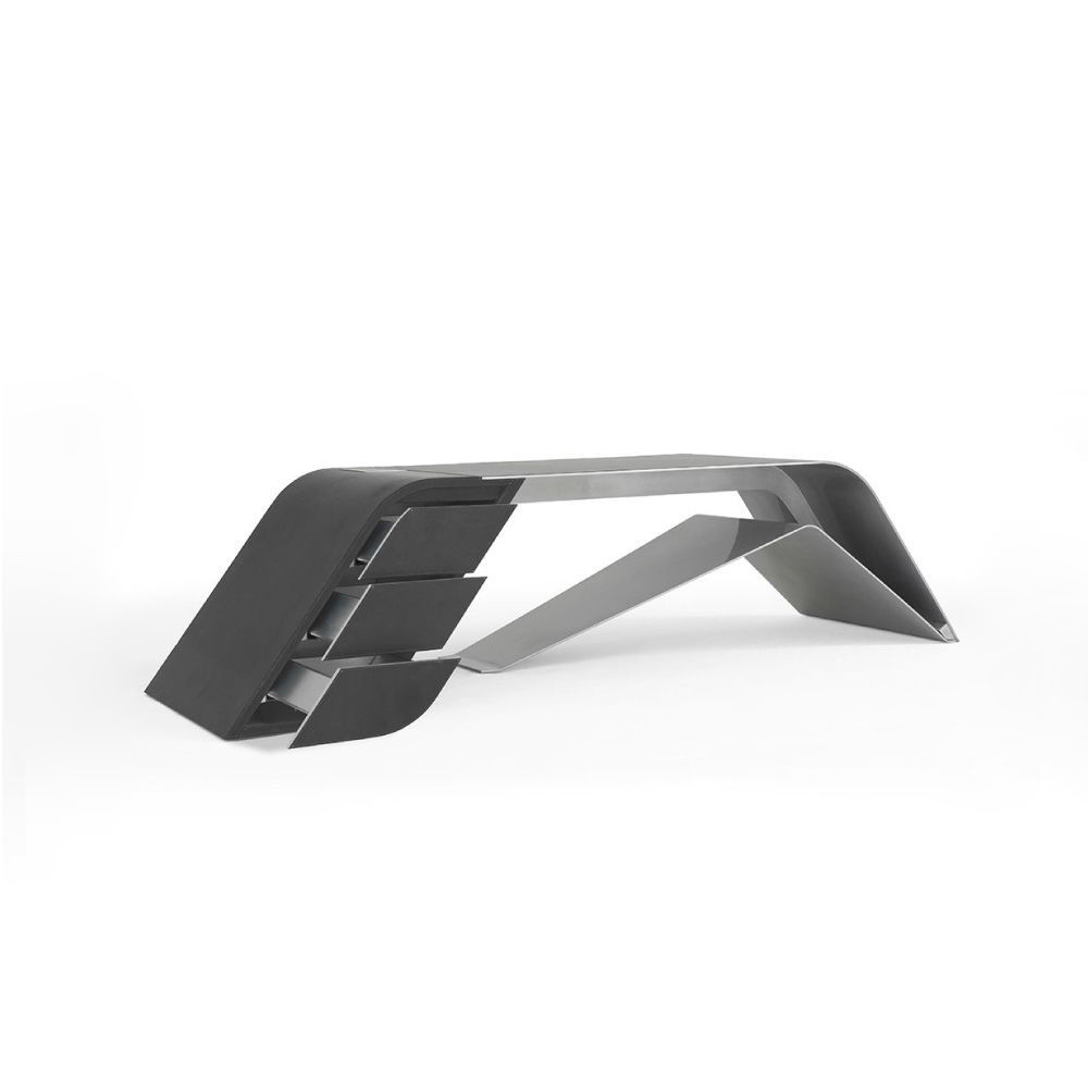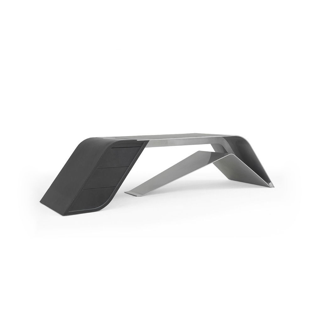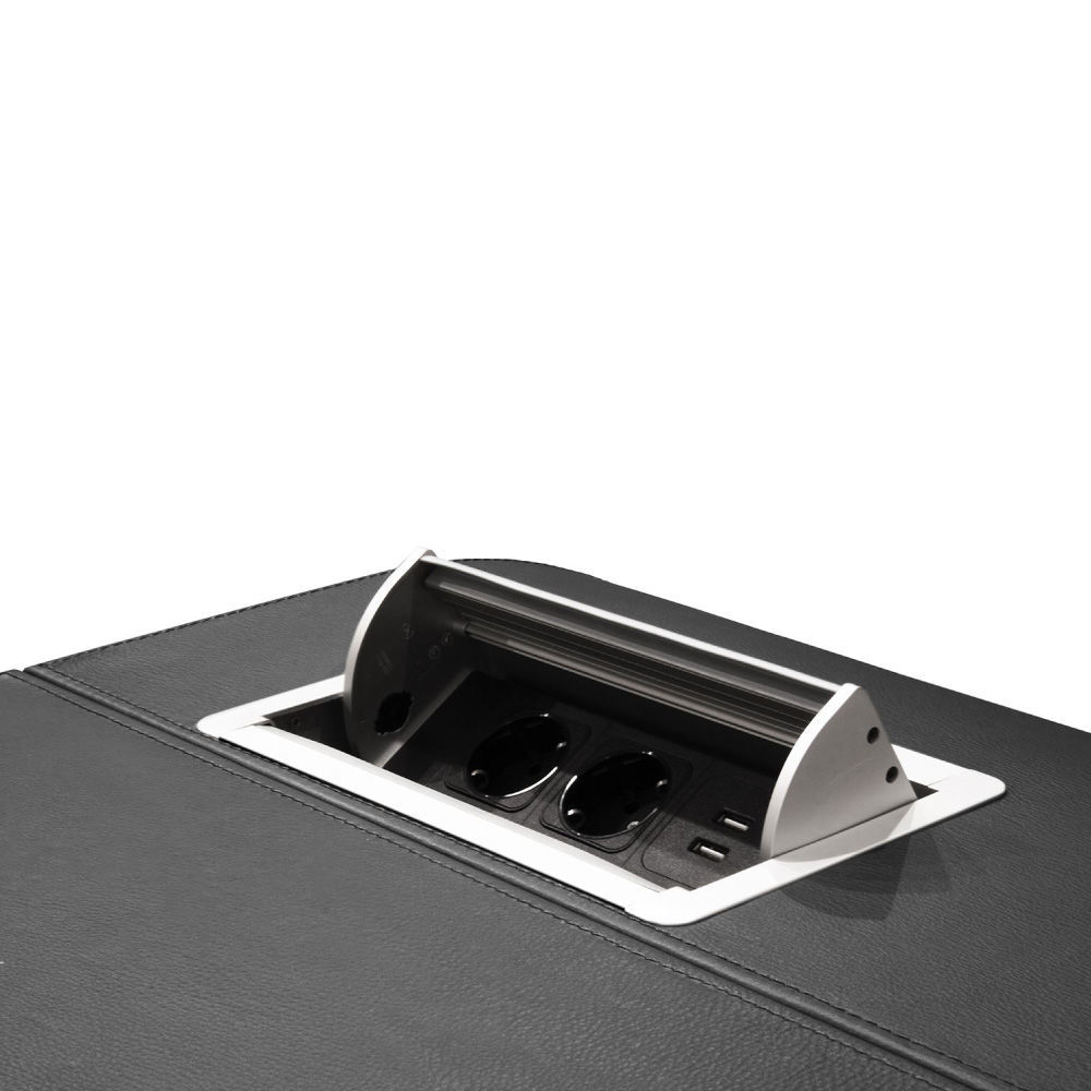 Desk with 3 push & pull drawers, with optional multiplug. Structure in Aluminium with upholstery in leather art. Skin col. Nero.