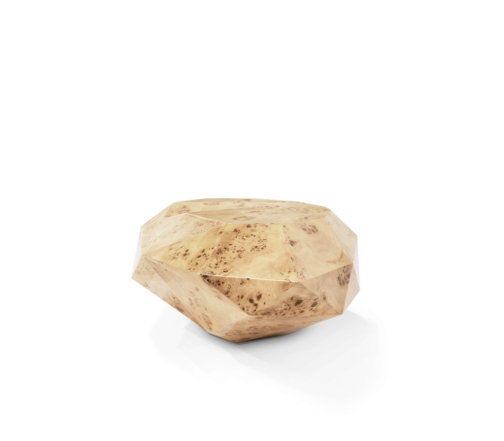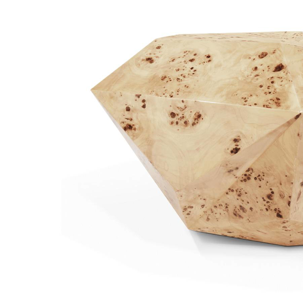 Poplar Root Veneer exterior. Wood structure. Feet: Polished casted brass.