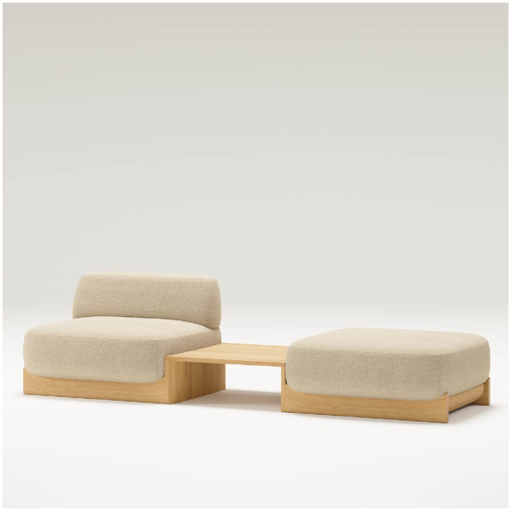 The wooden base is not just a structural foundation but a design language that runs throughout the collection. It serves as both a visual and functional connector, unifying the various modules while offering clean lines and a refined silhouette. This thoughtful use of solid wood brings consistency and elegance to the modular configuration, ensuring that whether the arrangement is compact or expansive, it maintains its visual harmony.