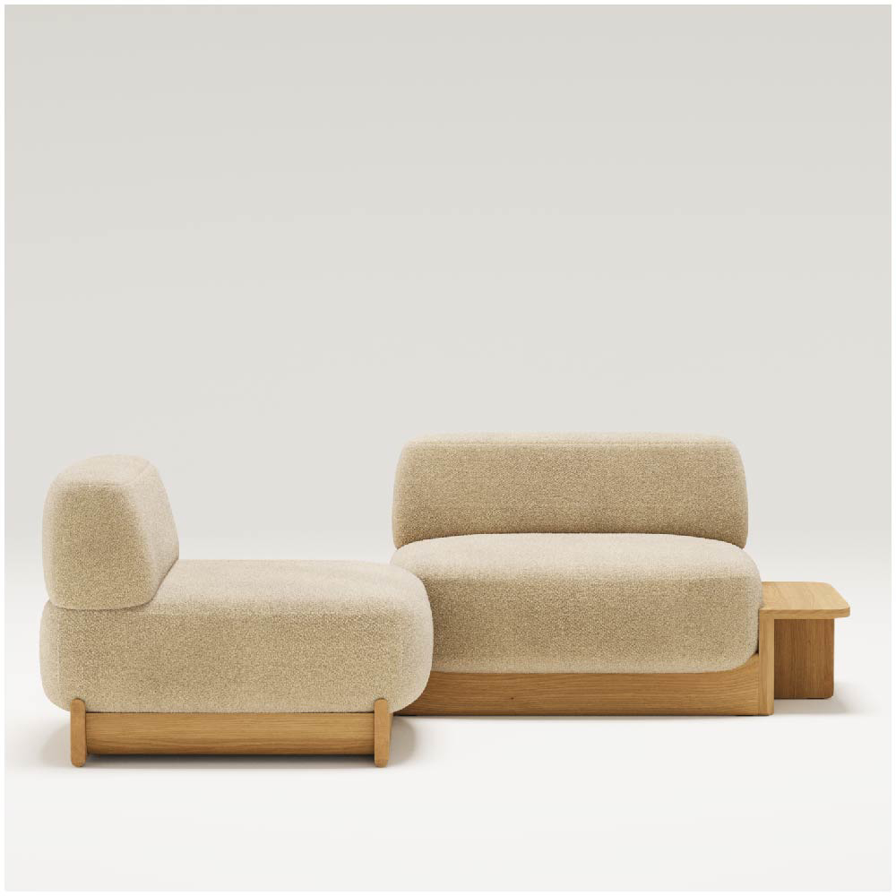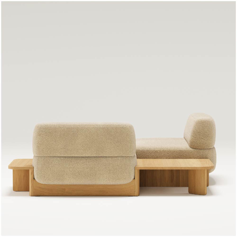 The wooden base is not just a structural foundation but a design language that runs throughout the collection. It serves as both a visual and functional connector, unifying the various modules while offering clean lines and a refined silhouette. This thoughtful use of solid wood brings consistency and elegance to the modular configuration, ensuring that whether the arrangement is compact or expansive, it maintains its visual harmony.