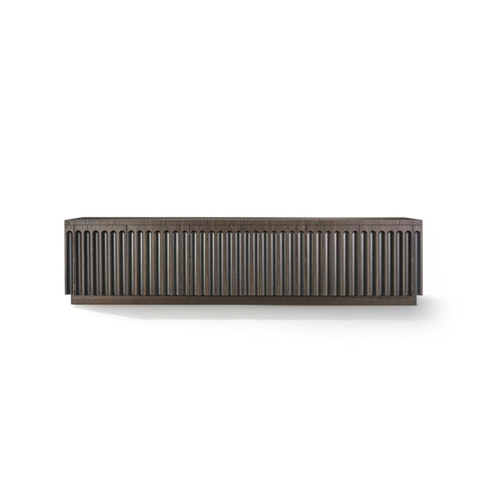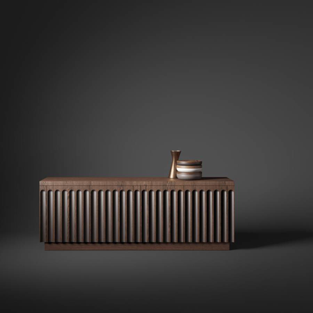 An extremely versatile piece of furniture for compositions and finishes: the wooden version with lacquered grooves gives a reading closer to the classic piece of furniture, while the fully lacquered versions, in sophisticated and current color variations, make it a modern and innovative container in its linear simplicity.