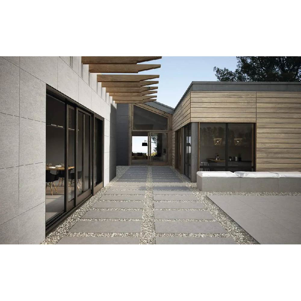 Neutrality and balance A granite-type porcelain tile, with fine and subtle grain, which offers a neutral and balanced surface that avoids overloading.