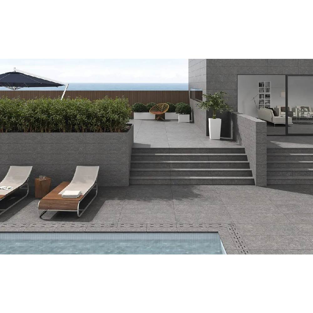 Neutrality and balance A granite-type porcelain tile, with fine and subtle grain, which offers a neutral and balanced surface that avoids overloading.