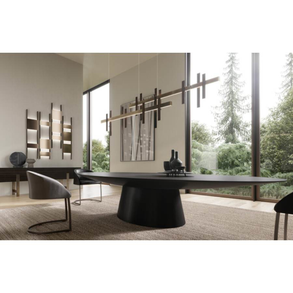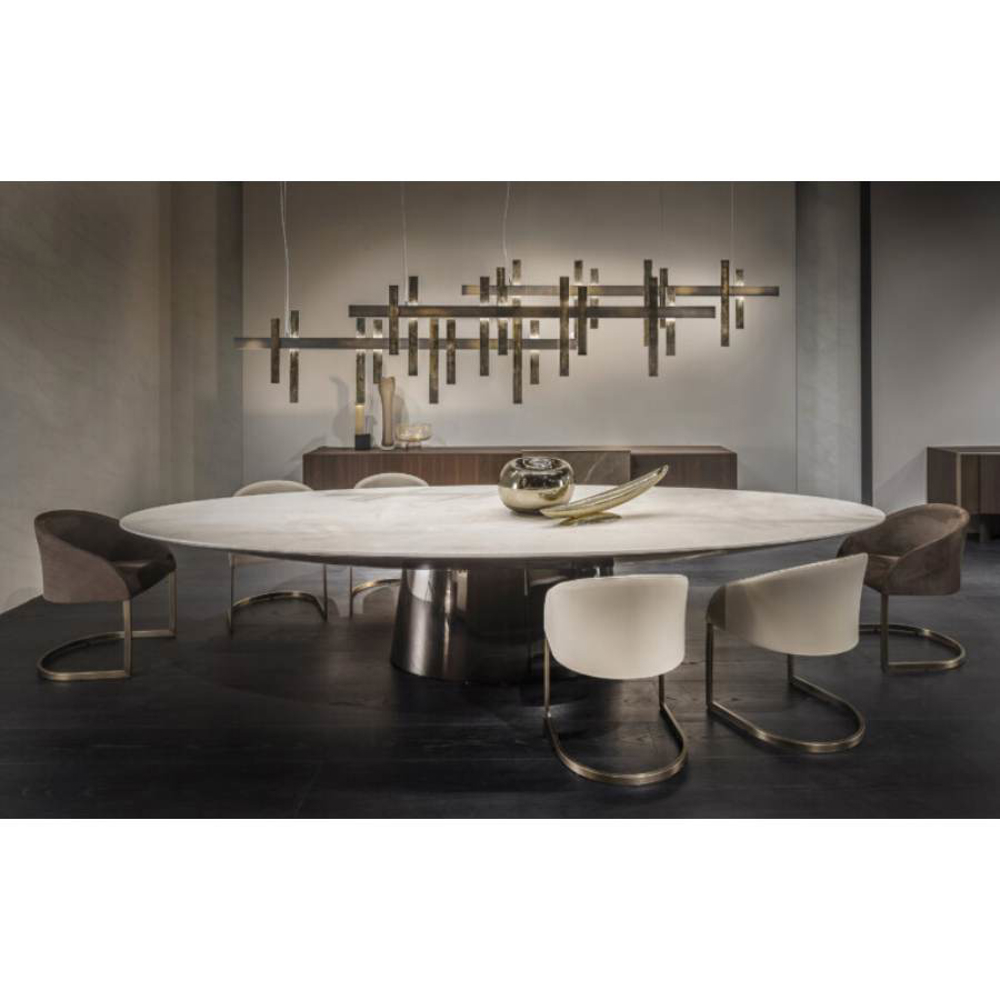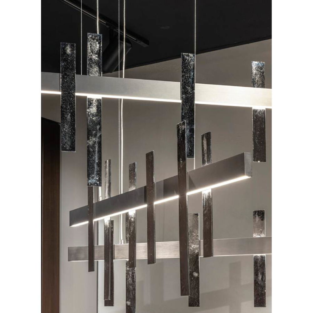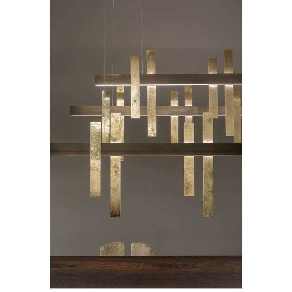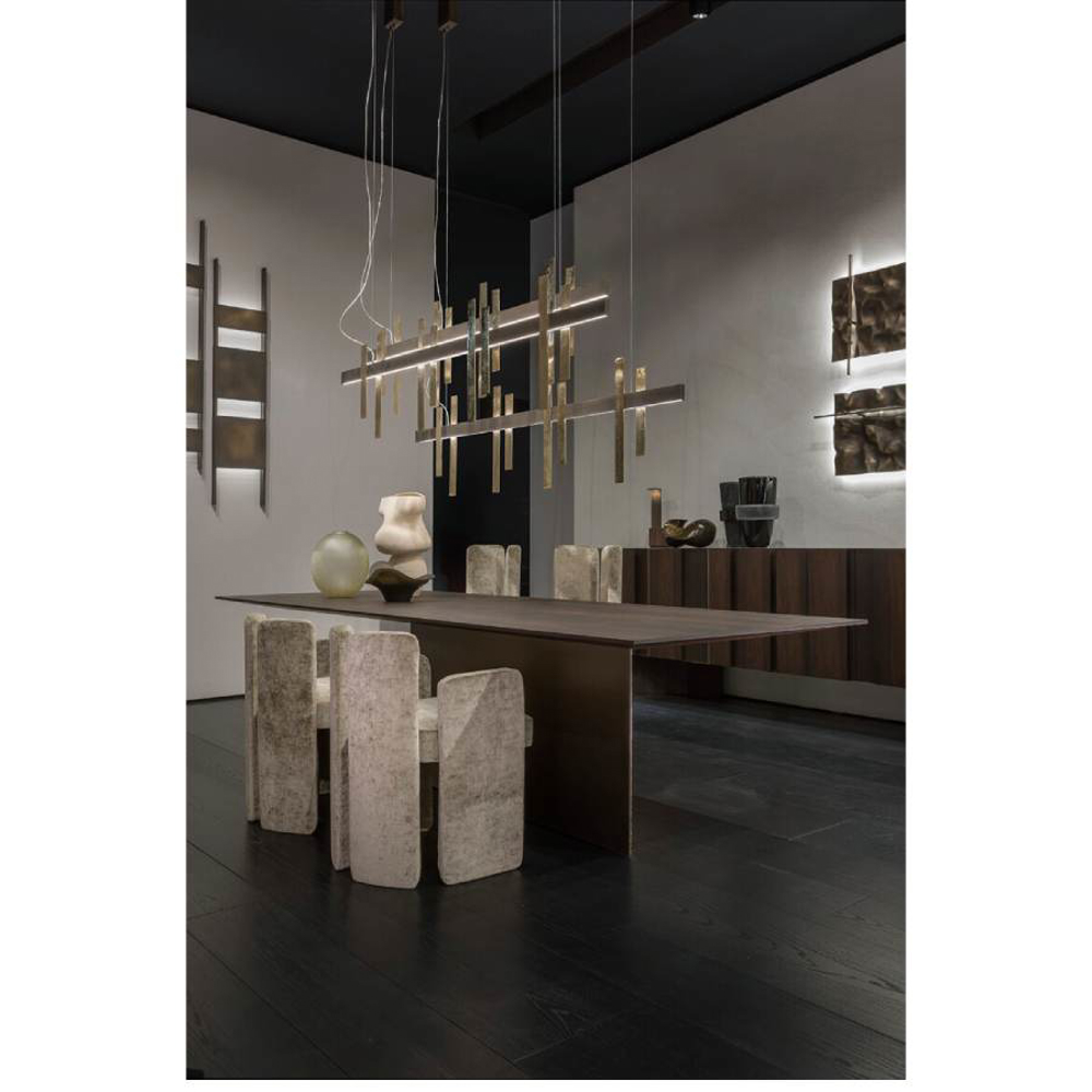 The sun filtered through the branches of a magnificent forest. Games of light and shadows that create magical and sophisticated atmospheres. This is the image that inspired Forest Light, a suspension lamp whose cast metal inserts make the object unique and precious.