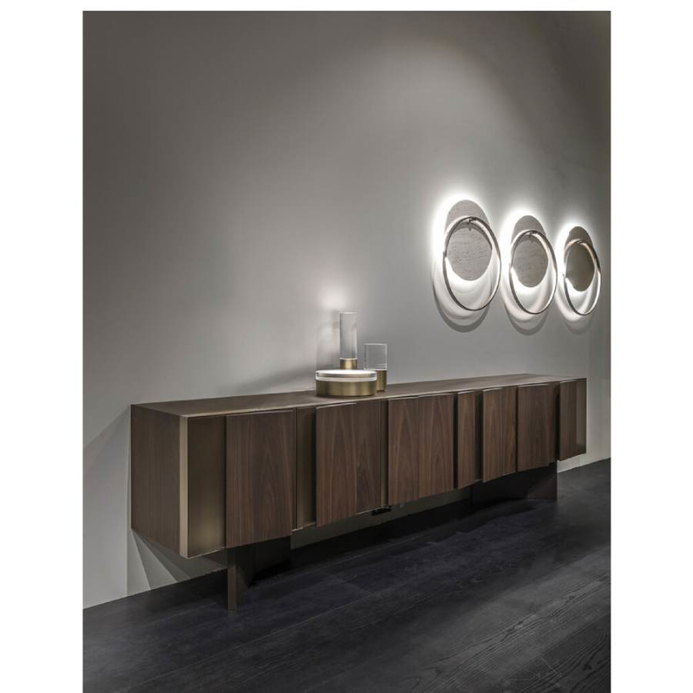 To enrich the FRACTAL furniture family comes Fractal sideboard whose design plays with the juxtaposition of three-dimensional elements with a triangular or trapezoidal section and flat parts that are interposed in order to generate a movement that tends to infinity.