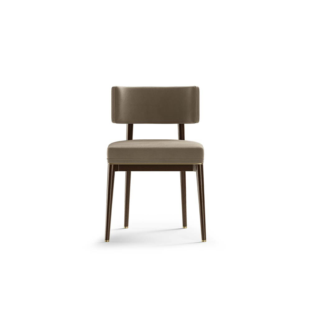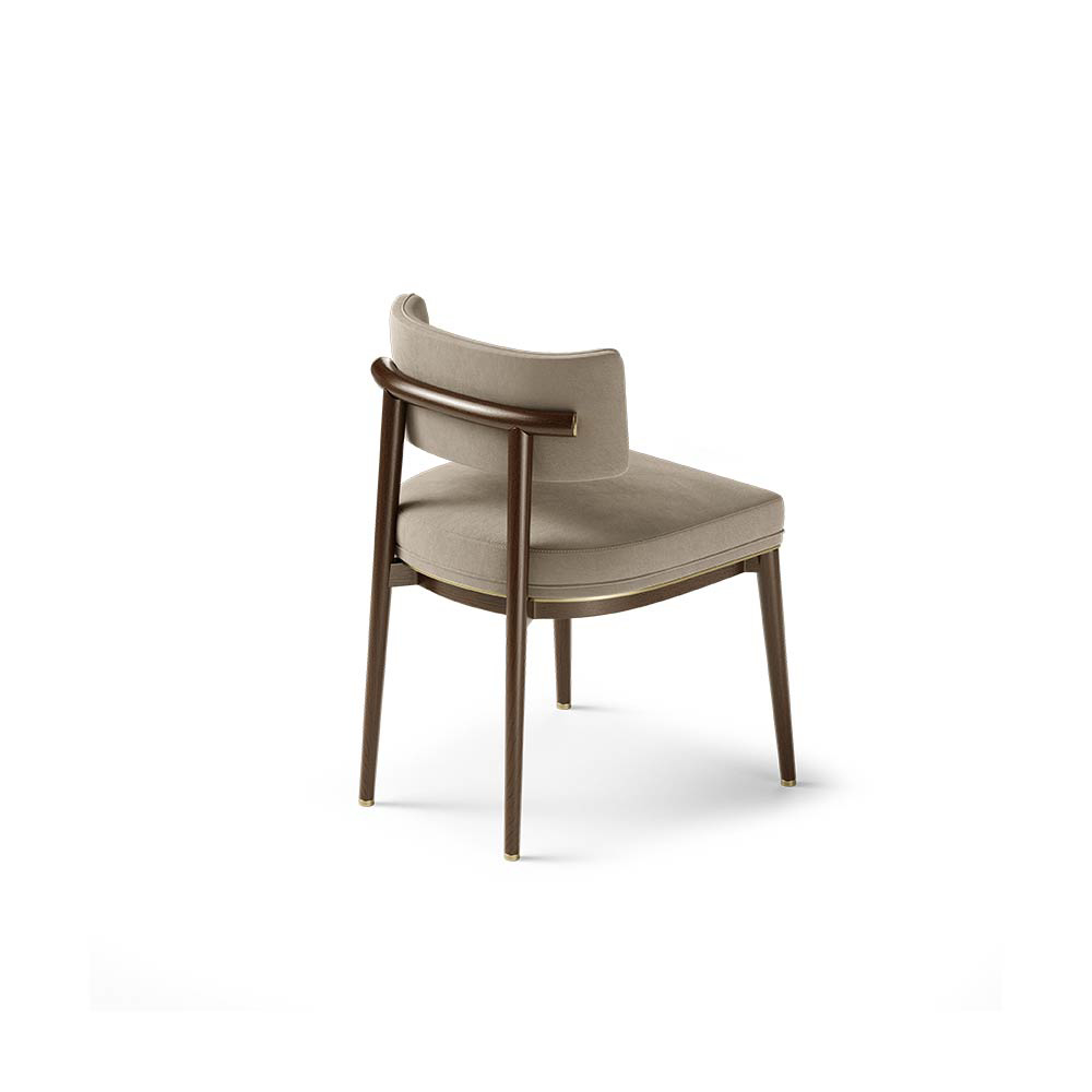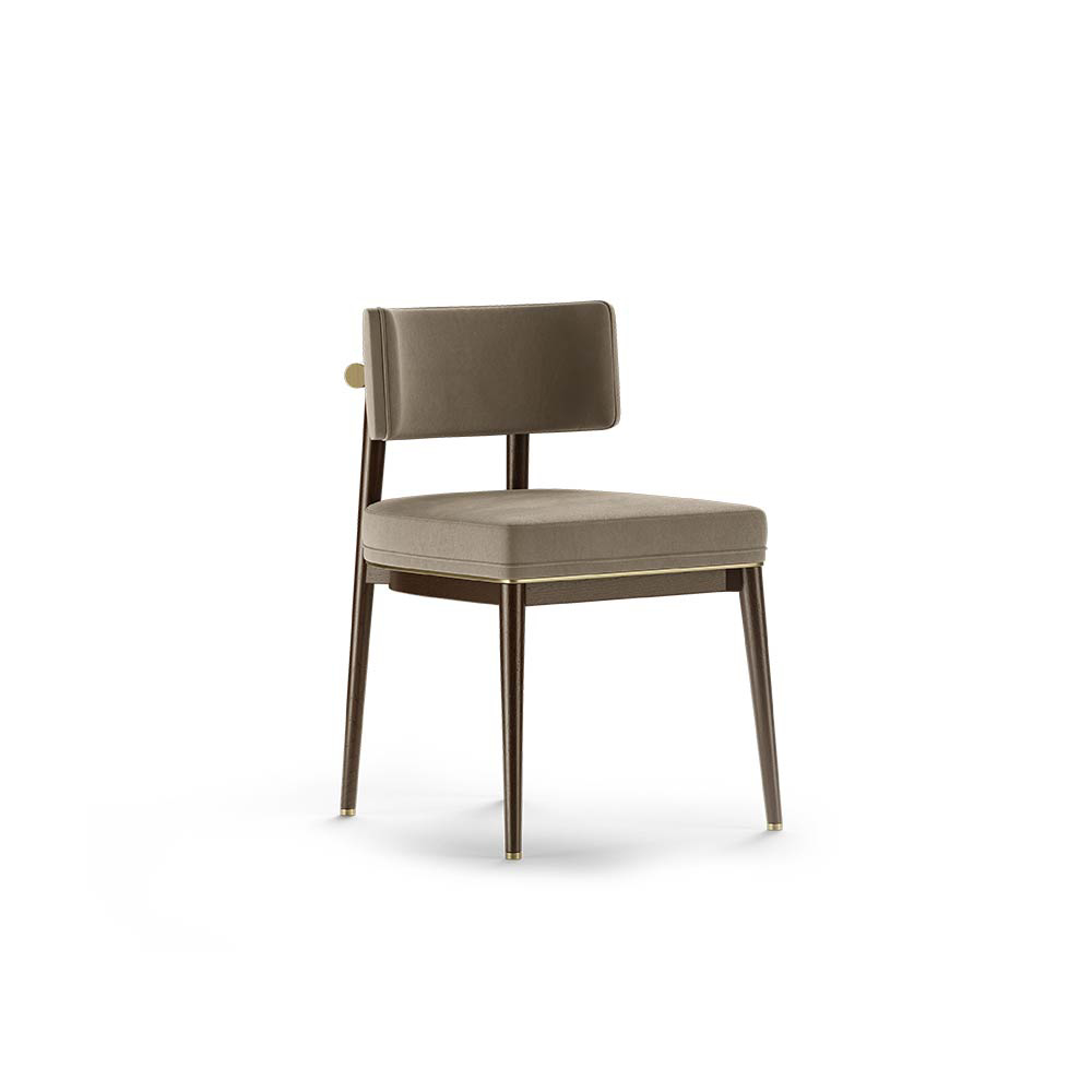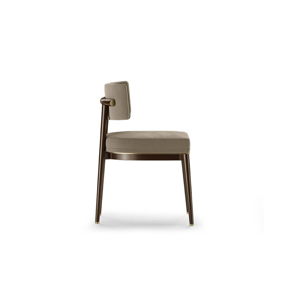 Materials and Finishes: Moka Oak Stain Matte Wood, Fabric, Brushed Brass