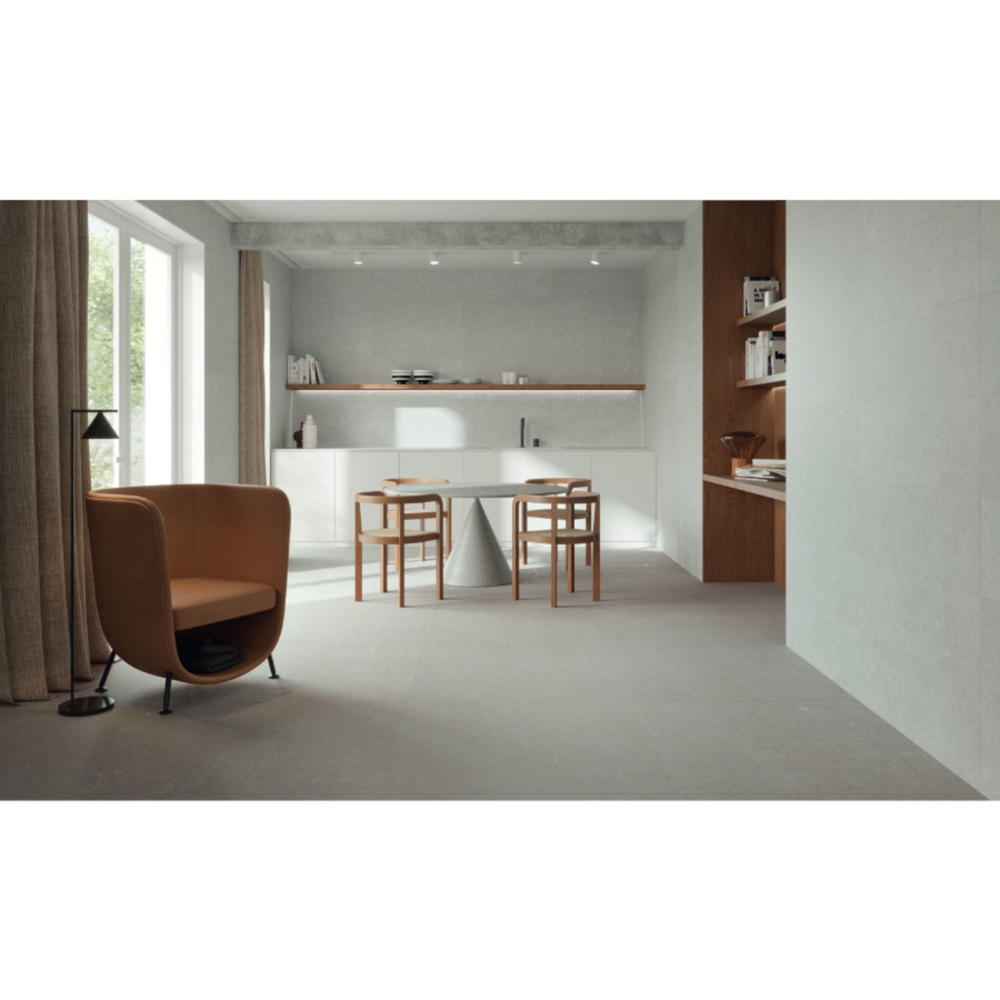 Ghent 4D also comes in 40"x71" and 40"x40" formats so that wall and floor surfaces tiled in matching sizes can be created, with a continuous joint and perfect attention to detail. Its limestone design comes in a choice of white, silver, beige and grey, with a design rich in subtle nuances, whose fossil remains and saline effects take us back through history . The same design is also available in a 5/16"-thick 40"x40" non-slip version, suitable for use outdoors for creating seamless transitions between indoor and outdoor floor areas, generating an added sense of spaciousness. The Ghent collection has been extended, with the incorporation of the most robust tiles to date: extra-thick 13/16" tiles. Available in a choice of 4 colours, Ghent 13/16" is the perfect solution for outdoor areas, thanks to its thickness and its 40"x40" and 20"x40" formats.